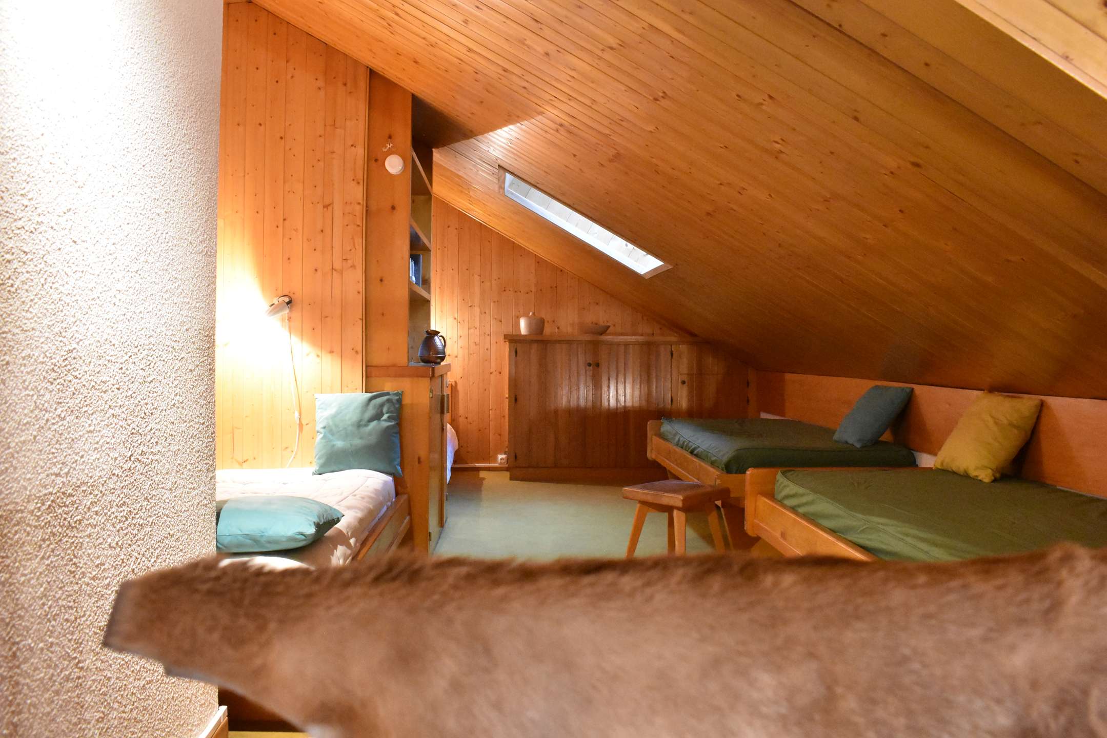 This apartment in the mountains located on the fourth floor with lift, includes a living room with fireplace and television, a south-facing loggia balcony, an equipped kitchen, 1 bedroom with double bed, bathroom and toilet, 1 bedroom with 2 single beds, 1 bedroom with 1 double bed (160) north balcony, 1 bathroom, 1 shower room and a separate WC. Upstairs in the mezzanine, you will find 3 single beds.