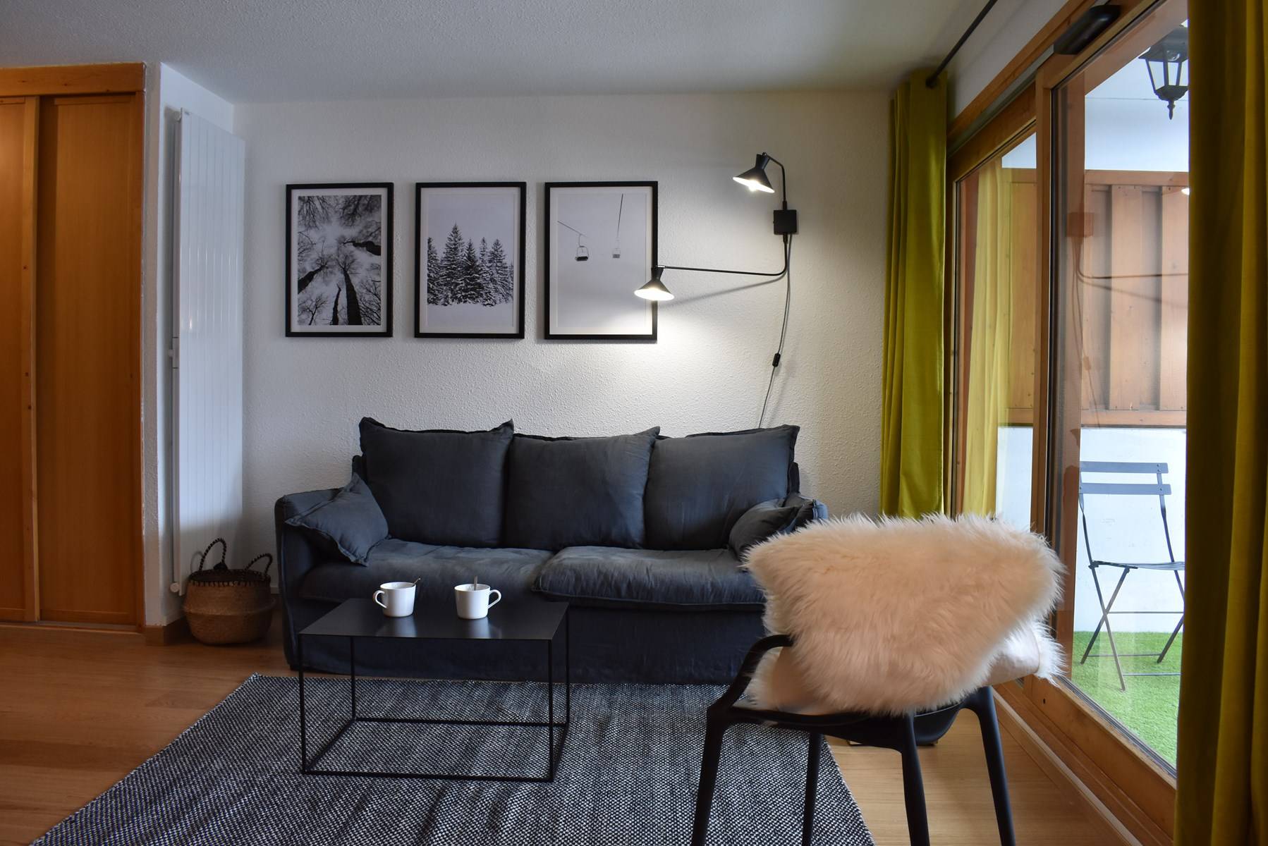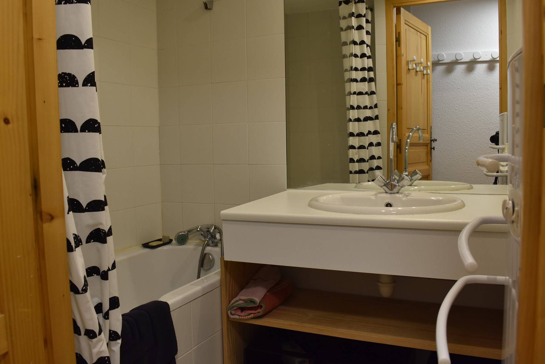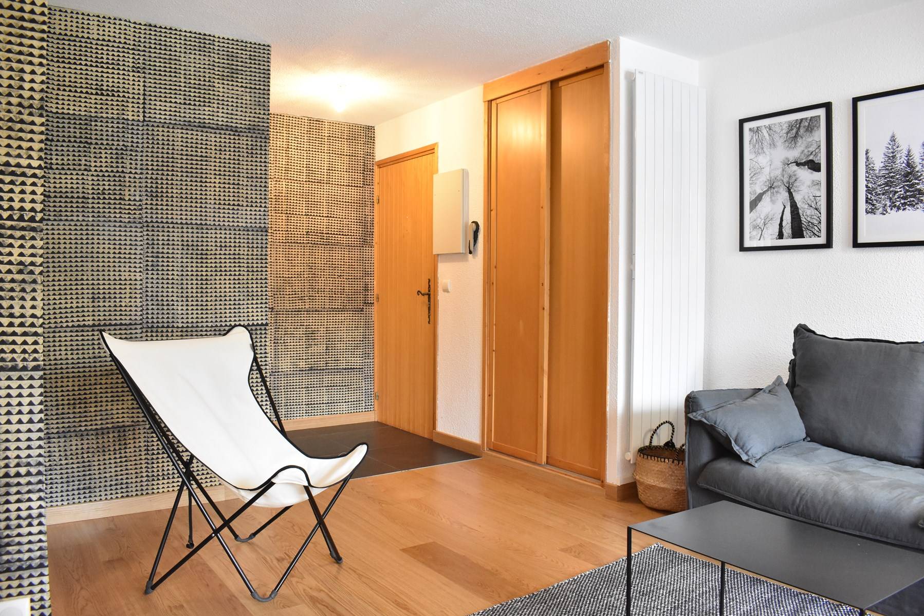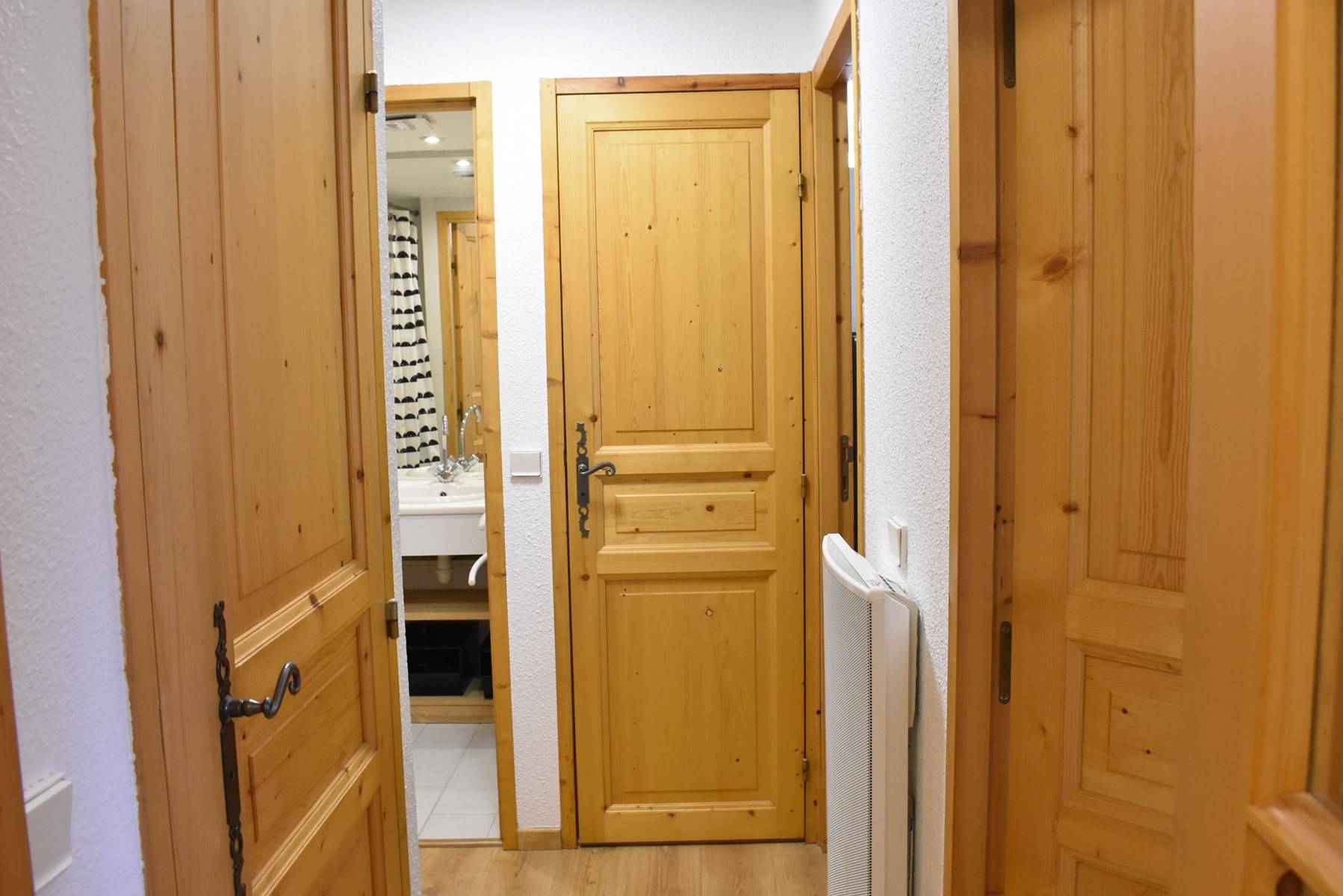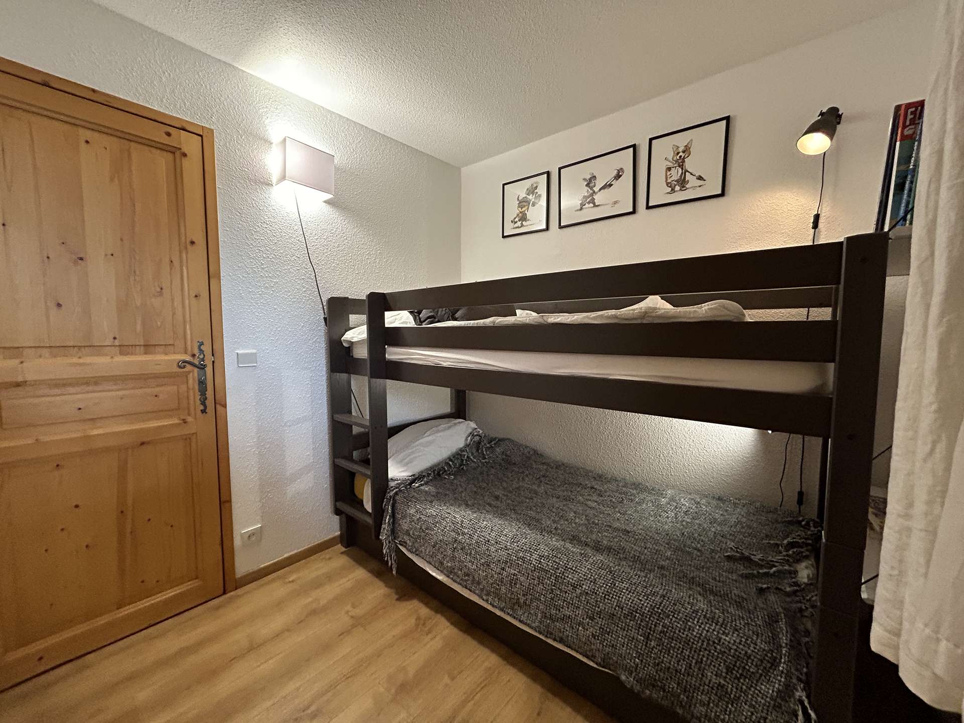 This apartment in the mountains located on the sixth floor, with elevator (B), includes an equipped kitchen opening onto a living room (south balcony) with television, a bedroom with double bed (160), a second bedroom with a set of bunk beds and a pull-out bed, a bathroom, a separate toilet and a separate shower cubicle. You have a ski locker and a parking space in the garage.