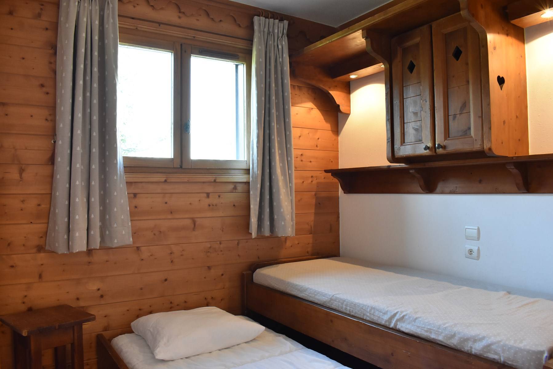 This apartment in the mountains located on the 2nd floor with elevator, includes a small kitchen open to the living room with 1 set of pull-out pull-out beds and a television, a bedroom with 1 double bed (160) with bathroom, a bedroom with 1 set of pull-out trundle beds, a bathroom and separate toilets.