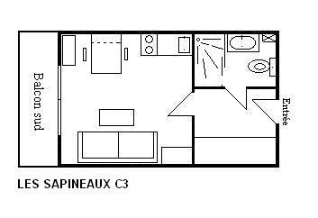 This Snow Studio apartment located on the 2nd floor, without elevator, includes a kitchen equipped with a dishwasher open to the living room with a 140 cm double sofa bed with dining area and television opening onto a south-facing balcony, an entrance with 1 1 person bed and a bathroom with WC.