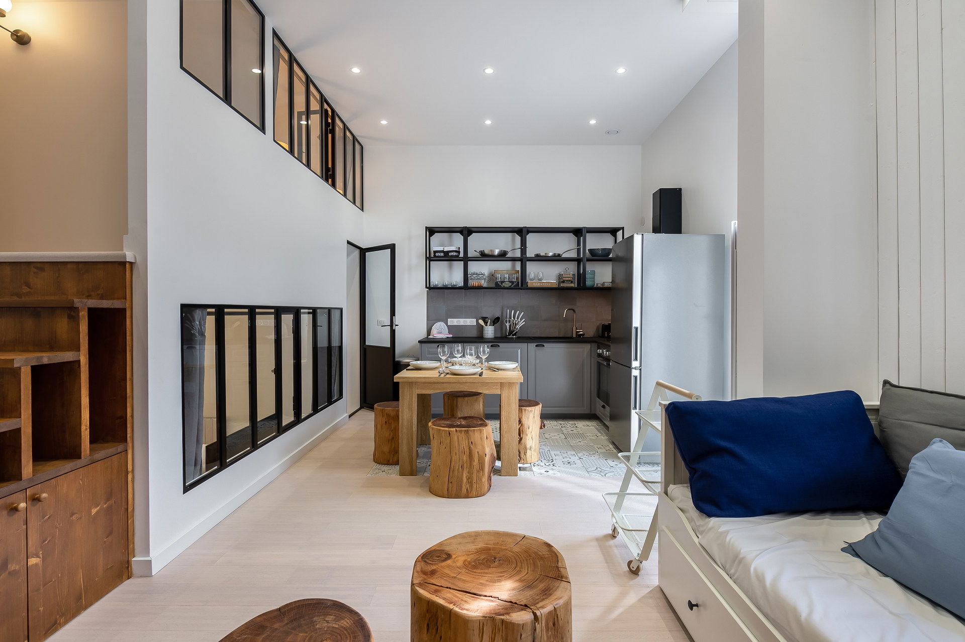 - Open-plan kitchen: fridge/freezer, dishwasher, microwave, induction hob, oven, Tassimo coffee maker, coffee machine, toaster, kettle,fondue set, raclette machine and blender