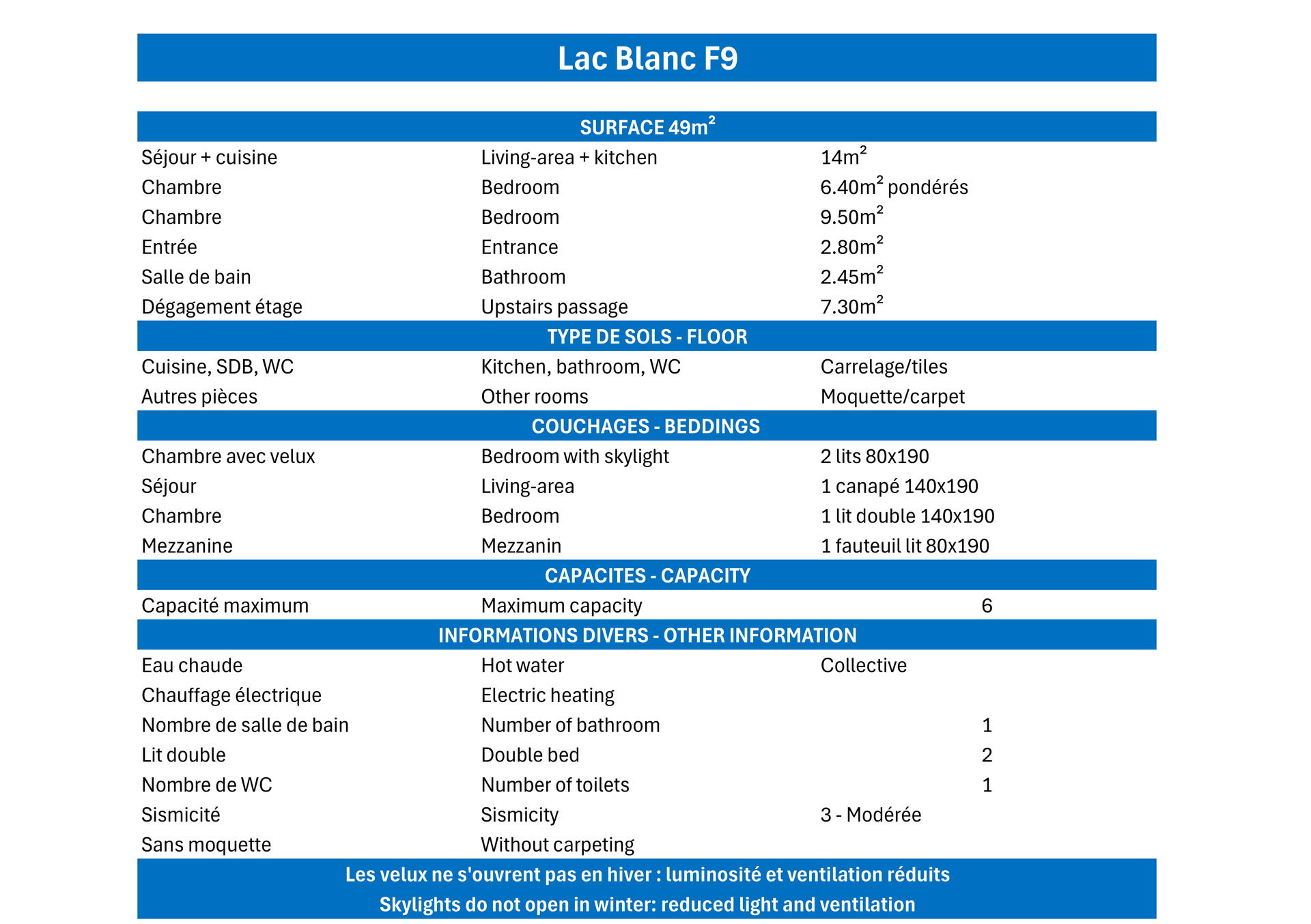 RES. LE LAC BLANC N° F9 - TYPE E1-