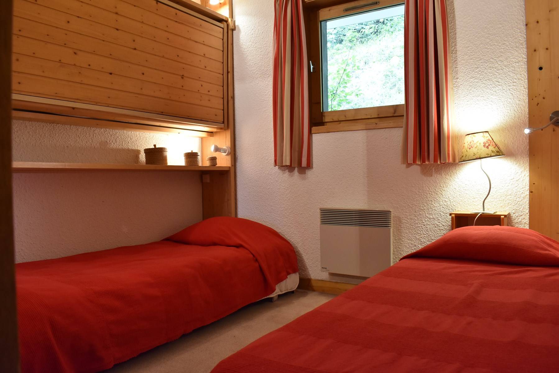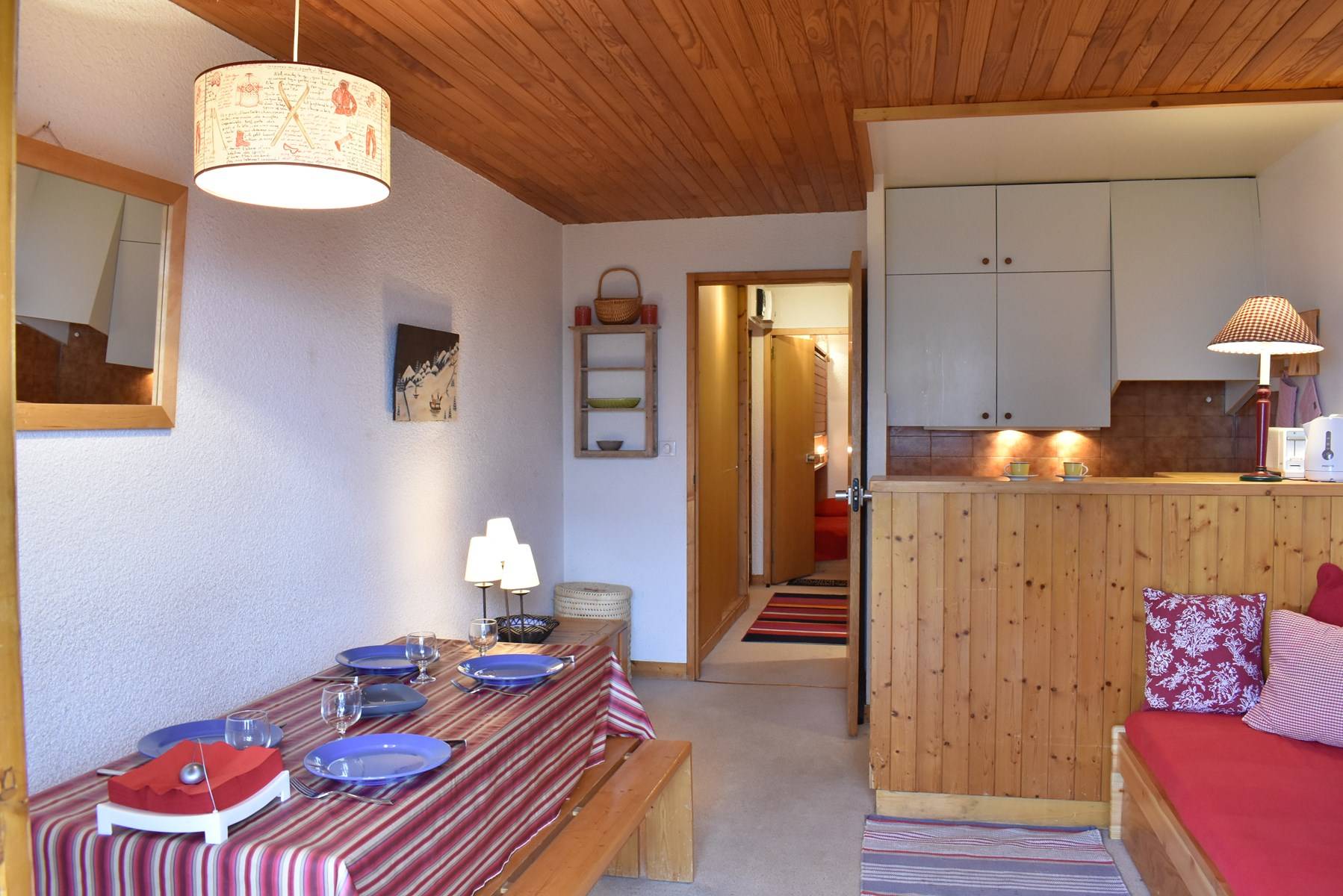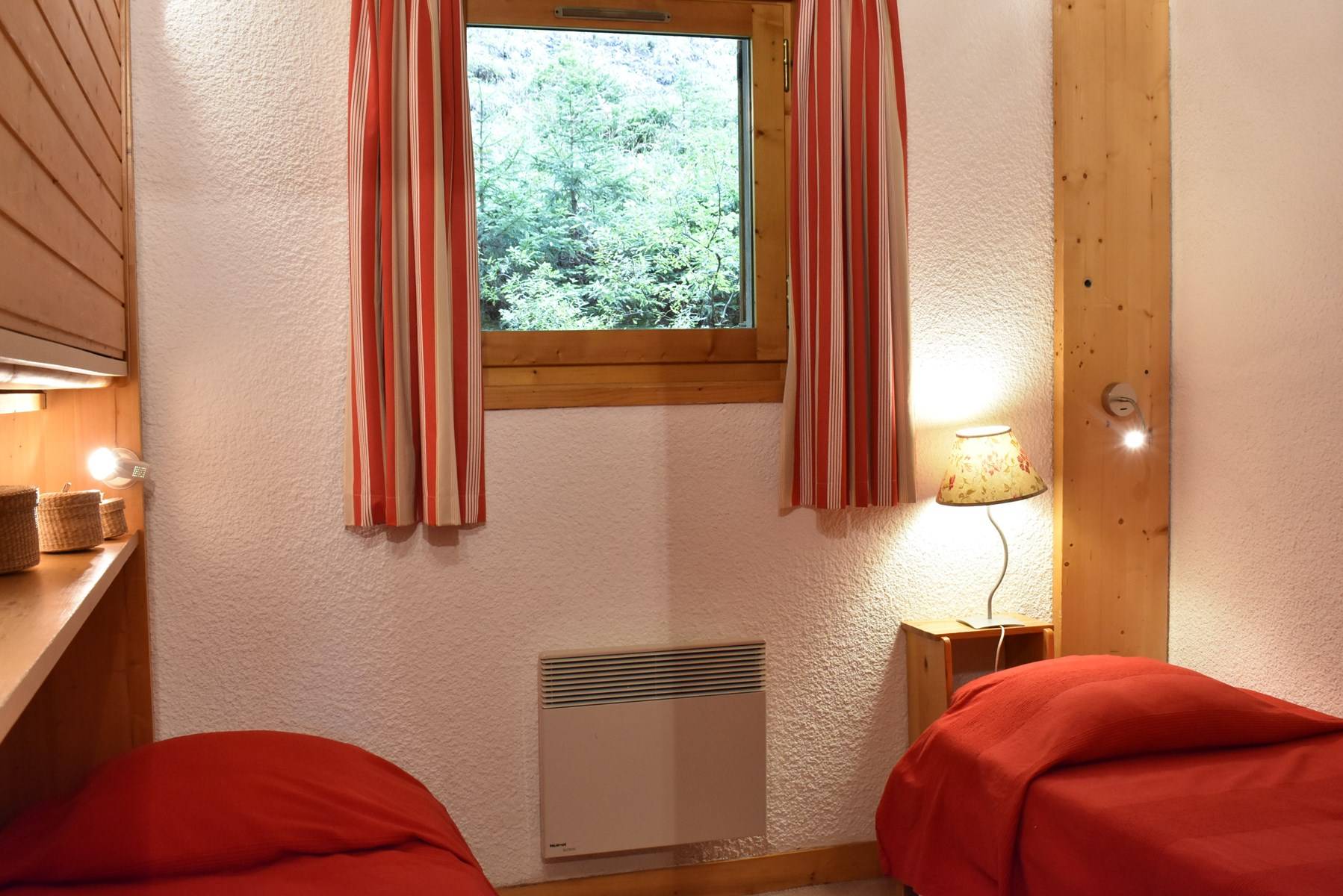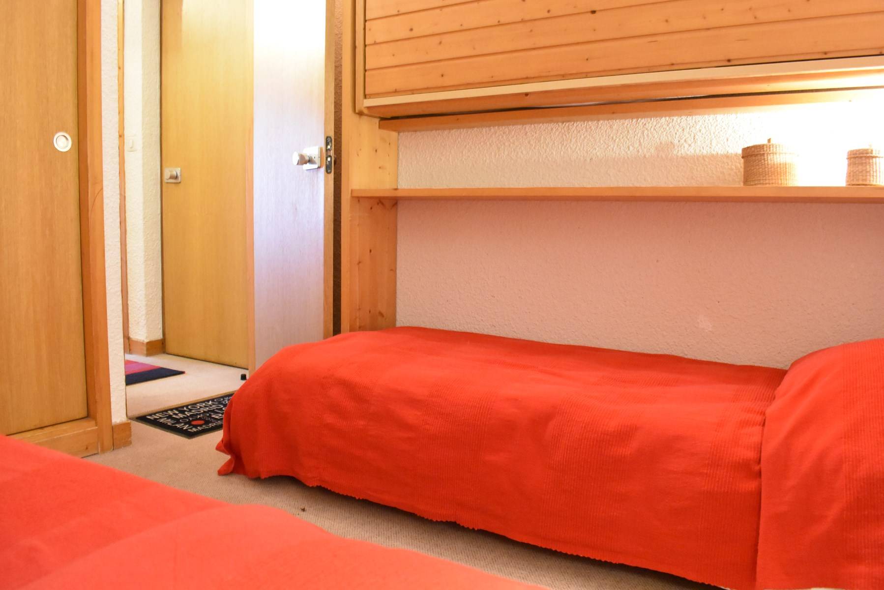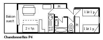 This apartment, accessible by lift, is on the floor of the residence. It includes an equipped kitchen open to the living room with a set of pull-out trundle beds and a television with integrated DVD player, a bedroom with 2 single beds, a bathroom and a separate toilet. A ski locker is available at the entrance of the residence.
