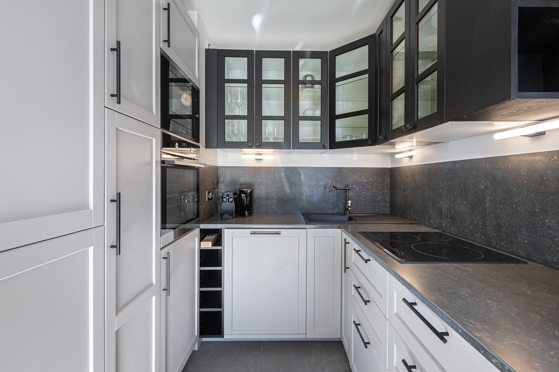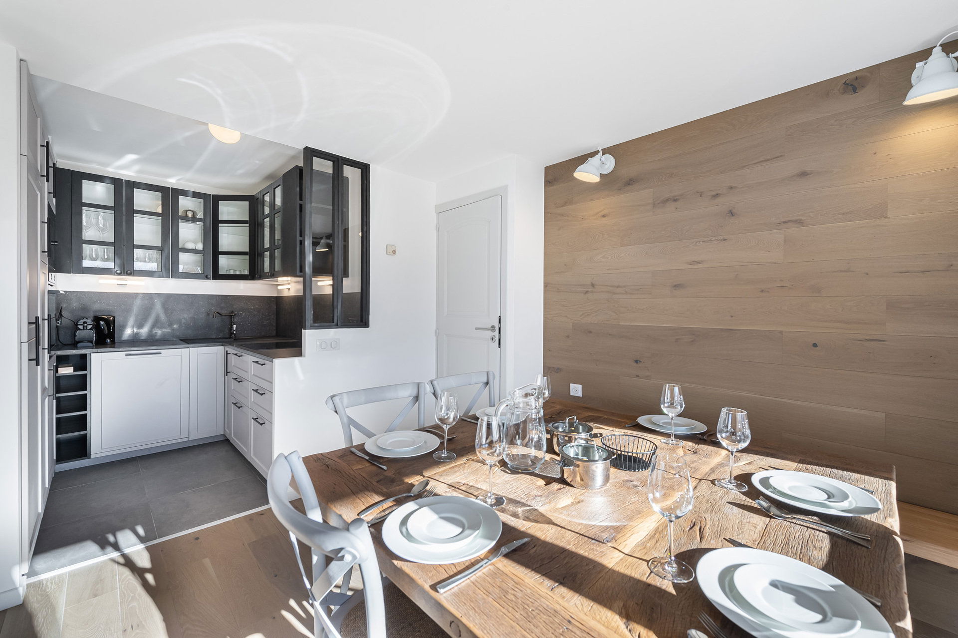 - Fitted open kitchen: fridge, oven, microwave, ceramic hob, dishwasher, kettle, toaster, fondue set and Nespresso machine