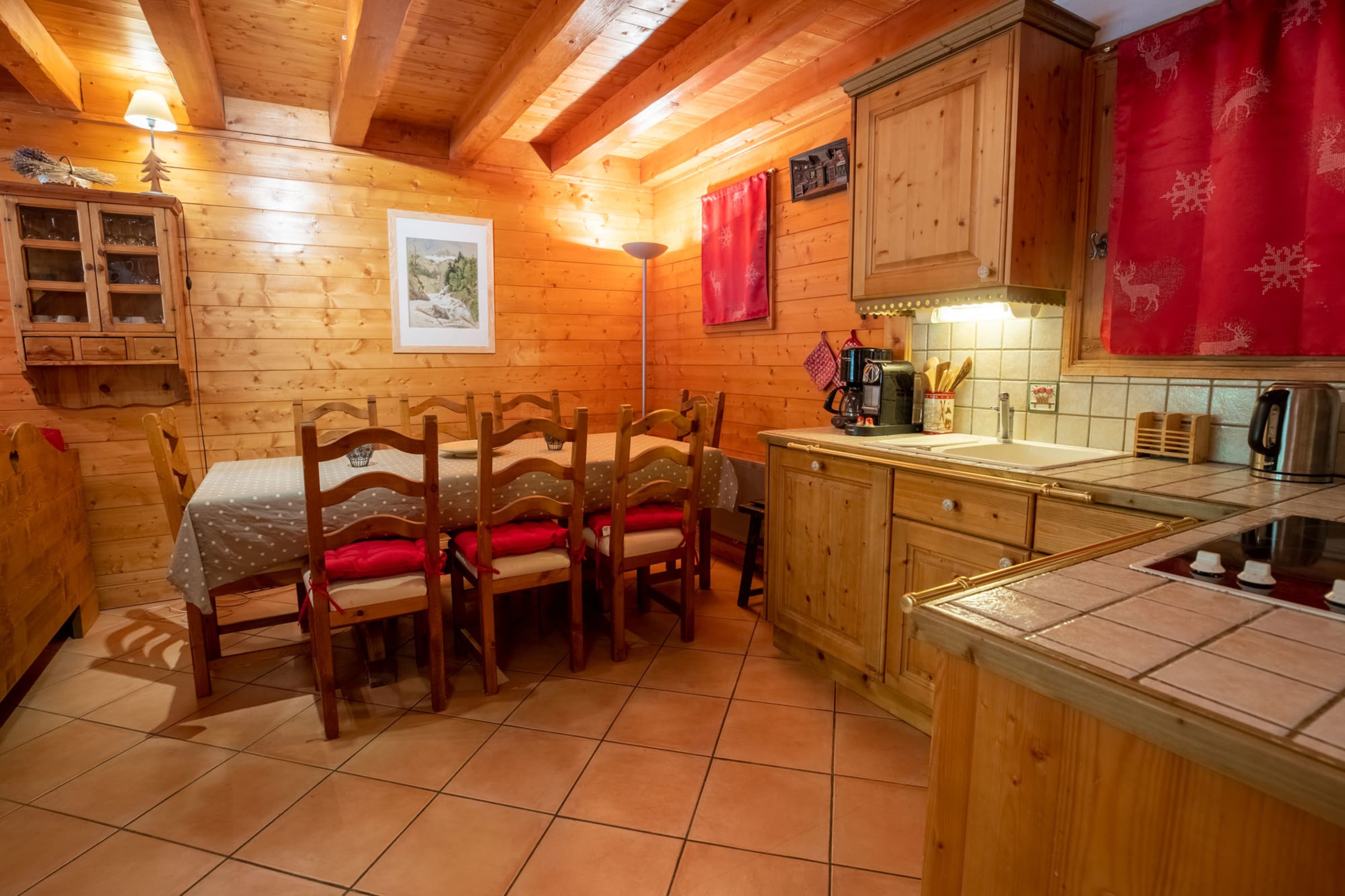 You will find a large living room with the open kitchen (well equipped) and the dining room. The living room and the fireplace are perfect for enjoying an evening after a good day of skiing.