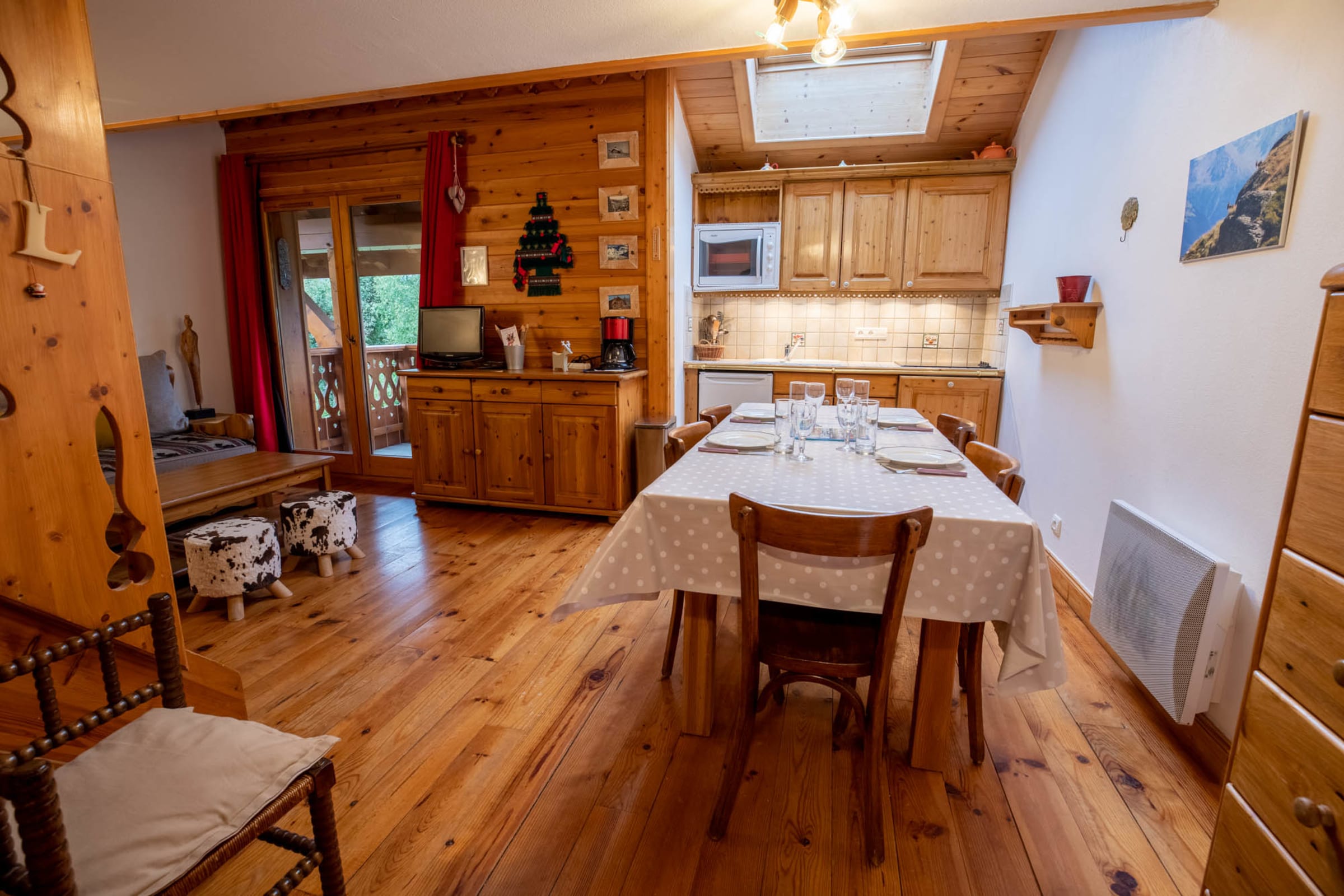 This apartment is very pleasant for a week skiing, located in the sheepfolds of the 3 valleys in Les Allues, 1 km from the Olympe ski lift.