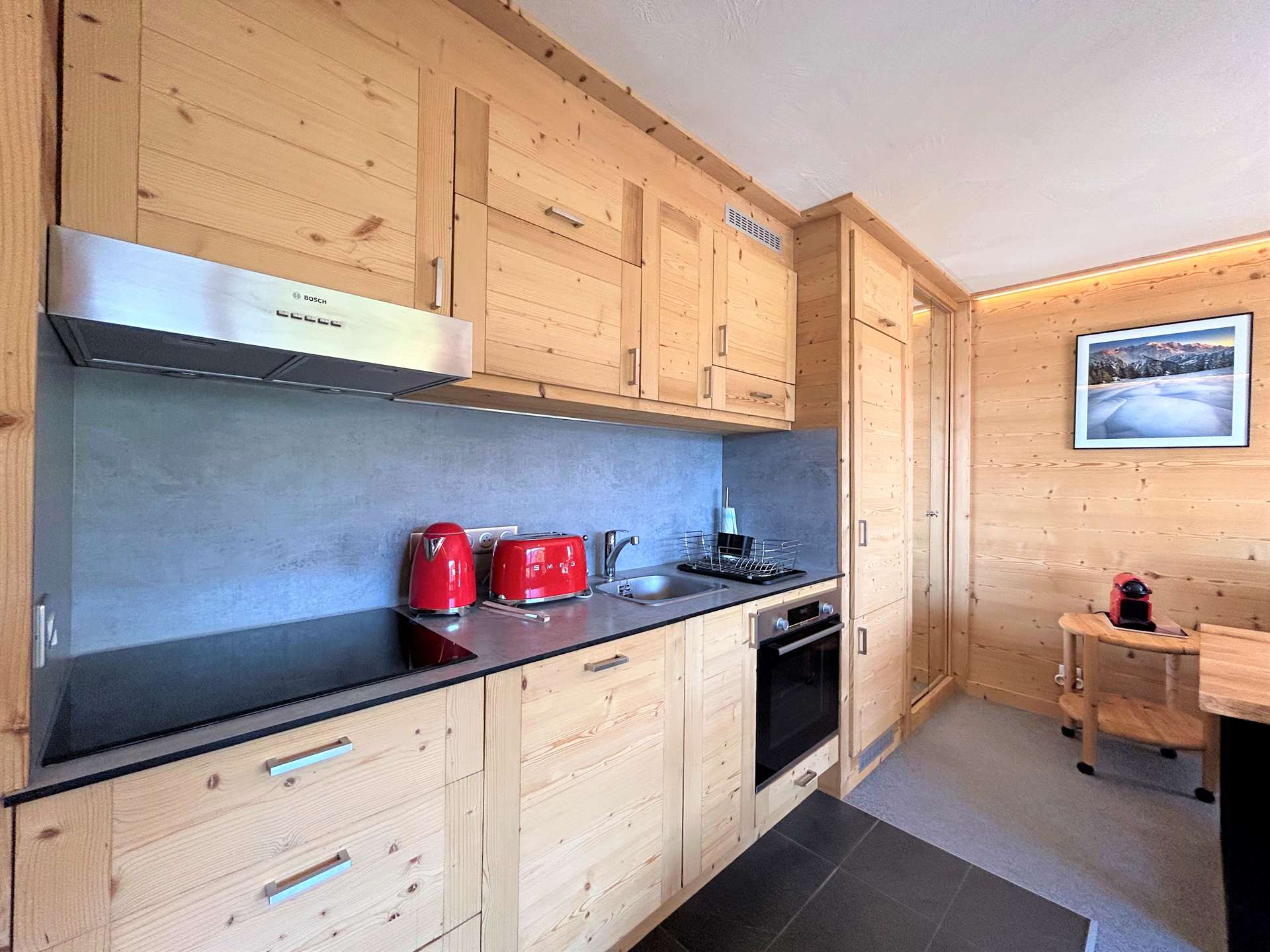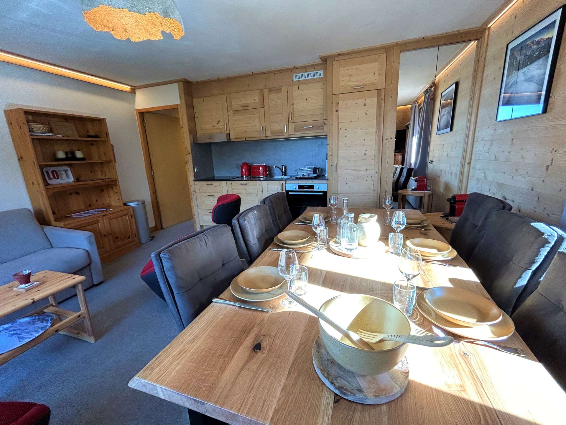 The advantages of this ski rental: a balcony facing South and West, a ski locker and access to the Morel chairlift 50 meters away.