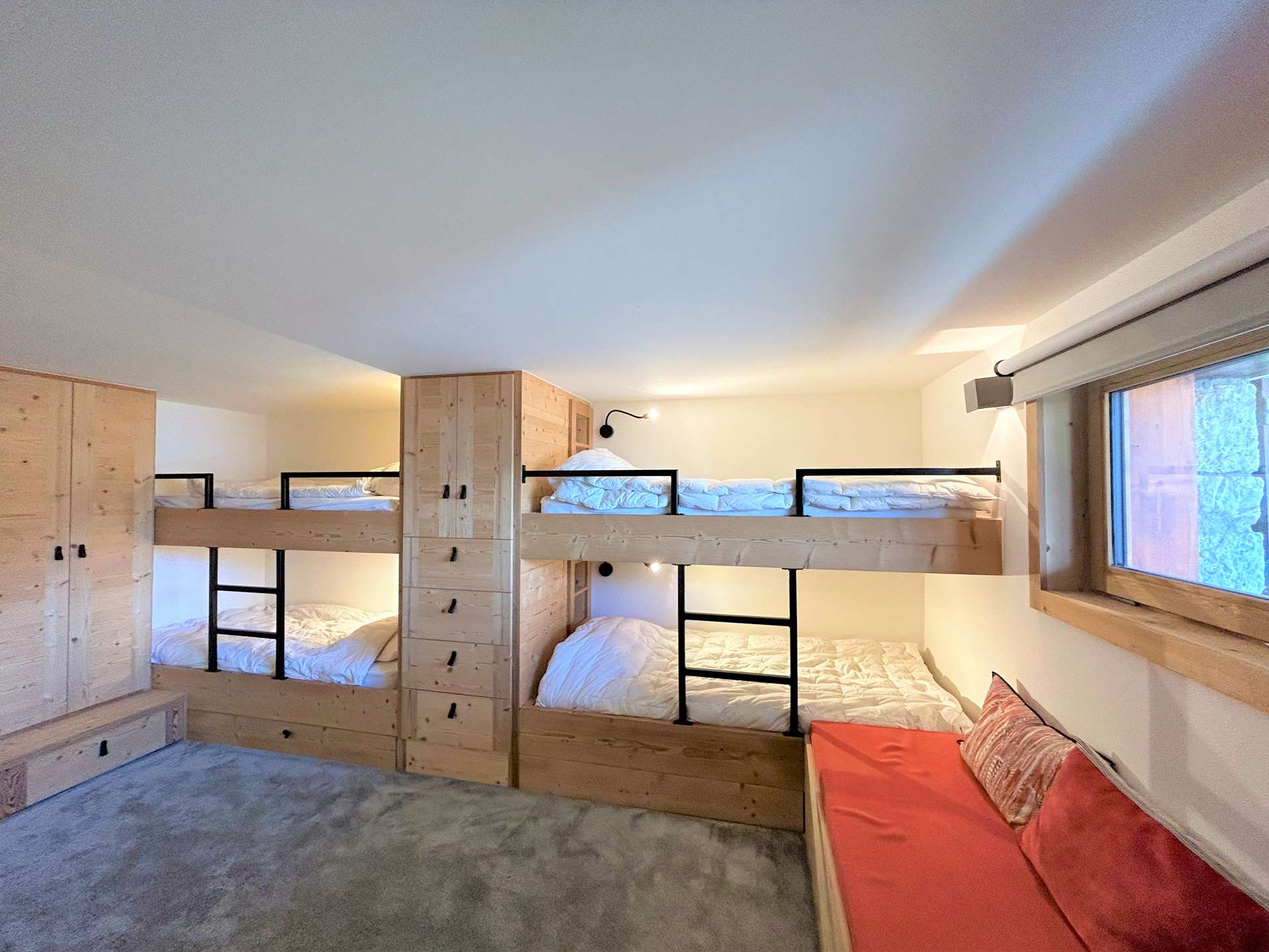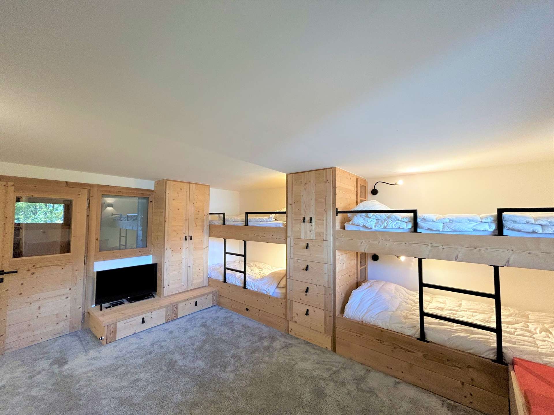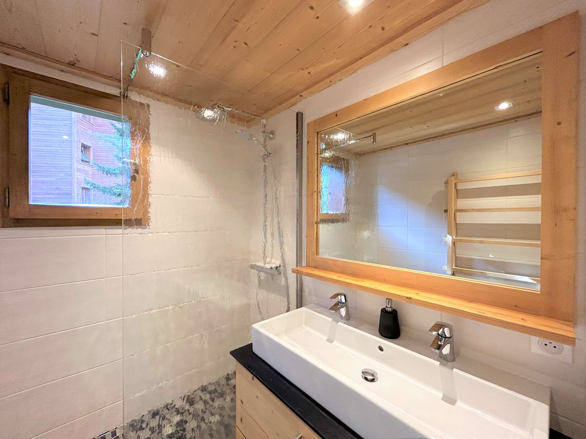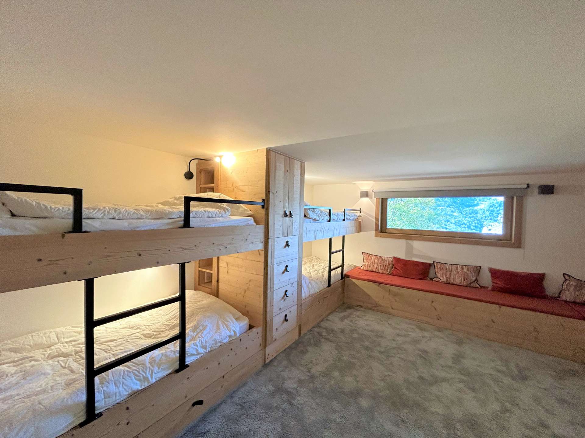 This holiday apartment is located on the ground floor. It includes on the level, a living room, a south and west facing balcony, television and DVD player, a kitchen open to the living room, a bedroom with a double bed (160), a shower room and 1 separate toilet. On the lower level you will find a bedroom with 2 sets of bunk beds (90), television, DVD player, a shower room, 1 separate toilet and finally a bedroom with a double bed (160), television with an adjoining bathroom . You have at your disposal a ski locker.