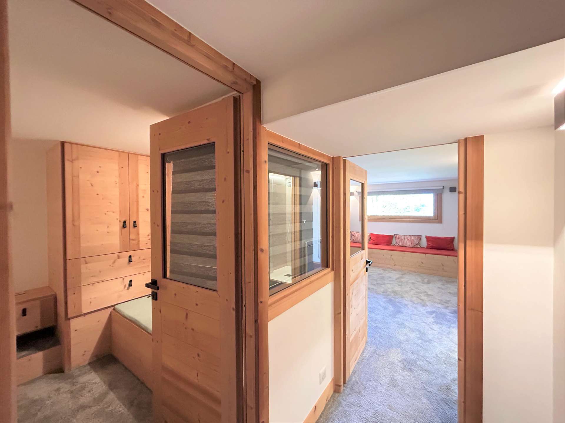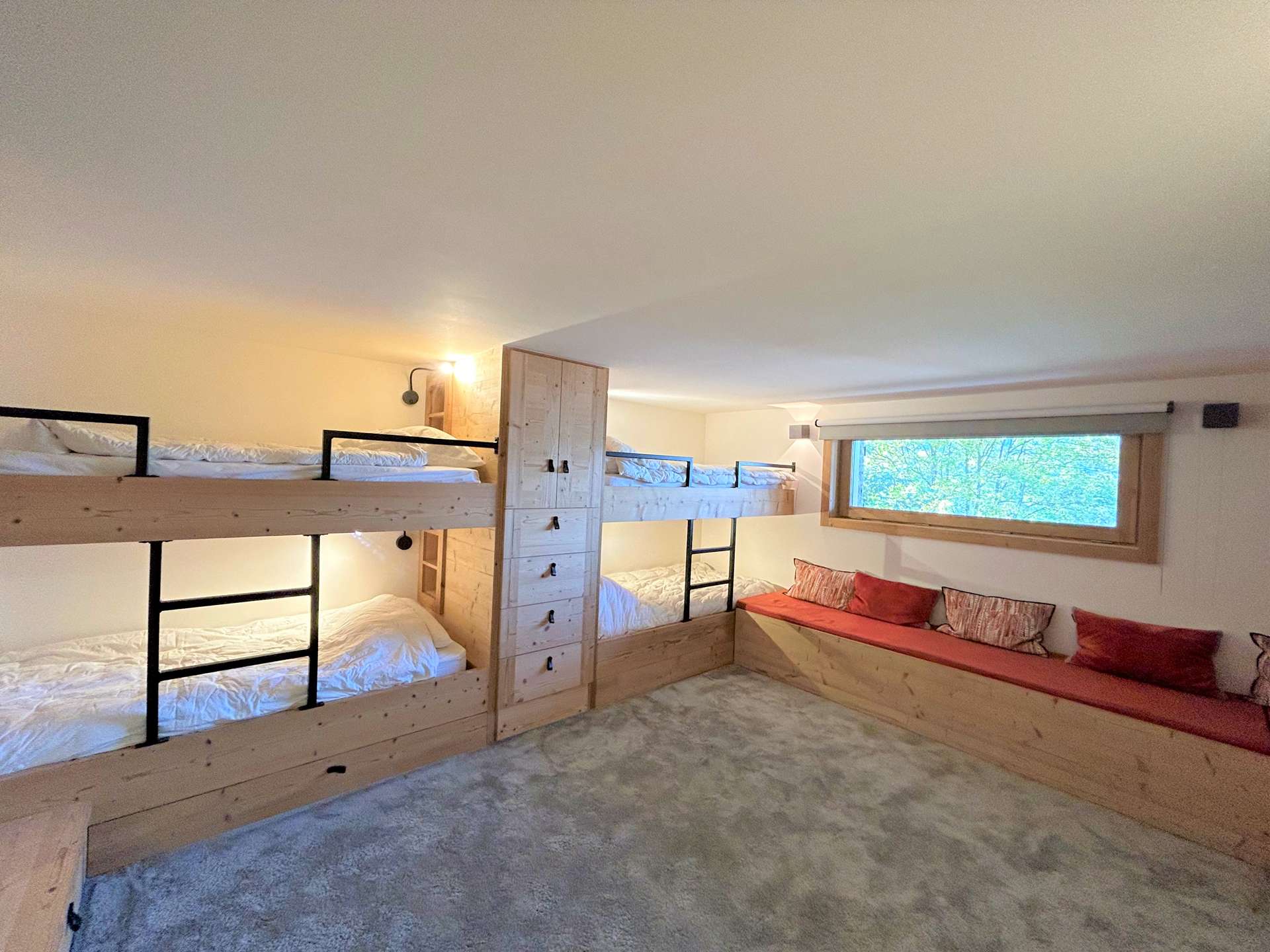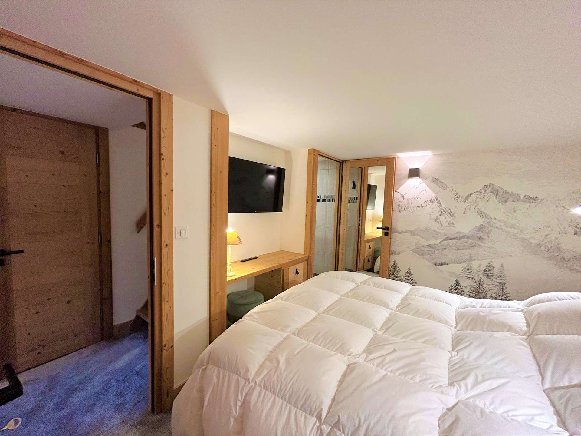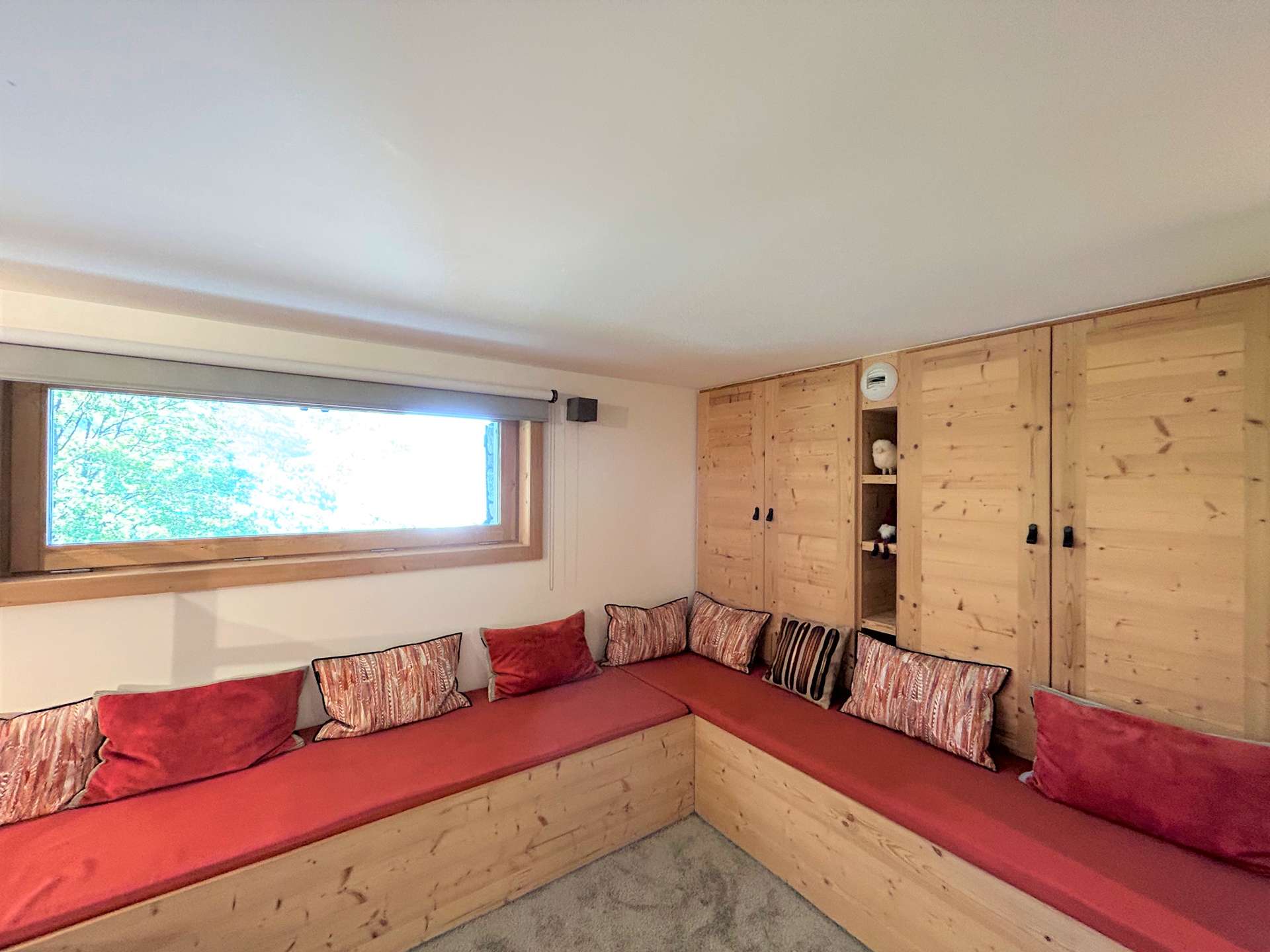 This holiday apartment is located on the ground floor. It includes on the level, a living room, a south and west facing balcony, television and DVD player, a kitchen open to the living room, a bedroom with a double bed (160), a shower room and 1 separate toilet. On the lower level you will find a bedroom with 2 sets of bunk beds (90), television, DVD player, a shower room, 1 separate toilet and finally a bedroom with a double bed (160), television with an adjoining bathroom . You have at your disposal a ski locker.
