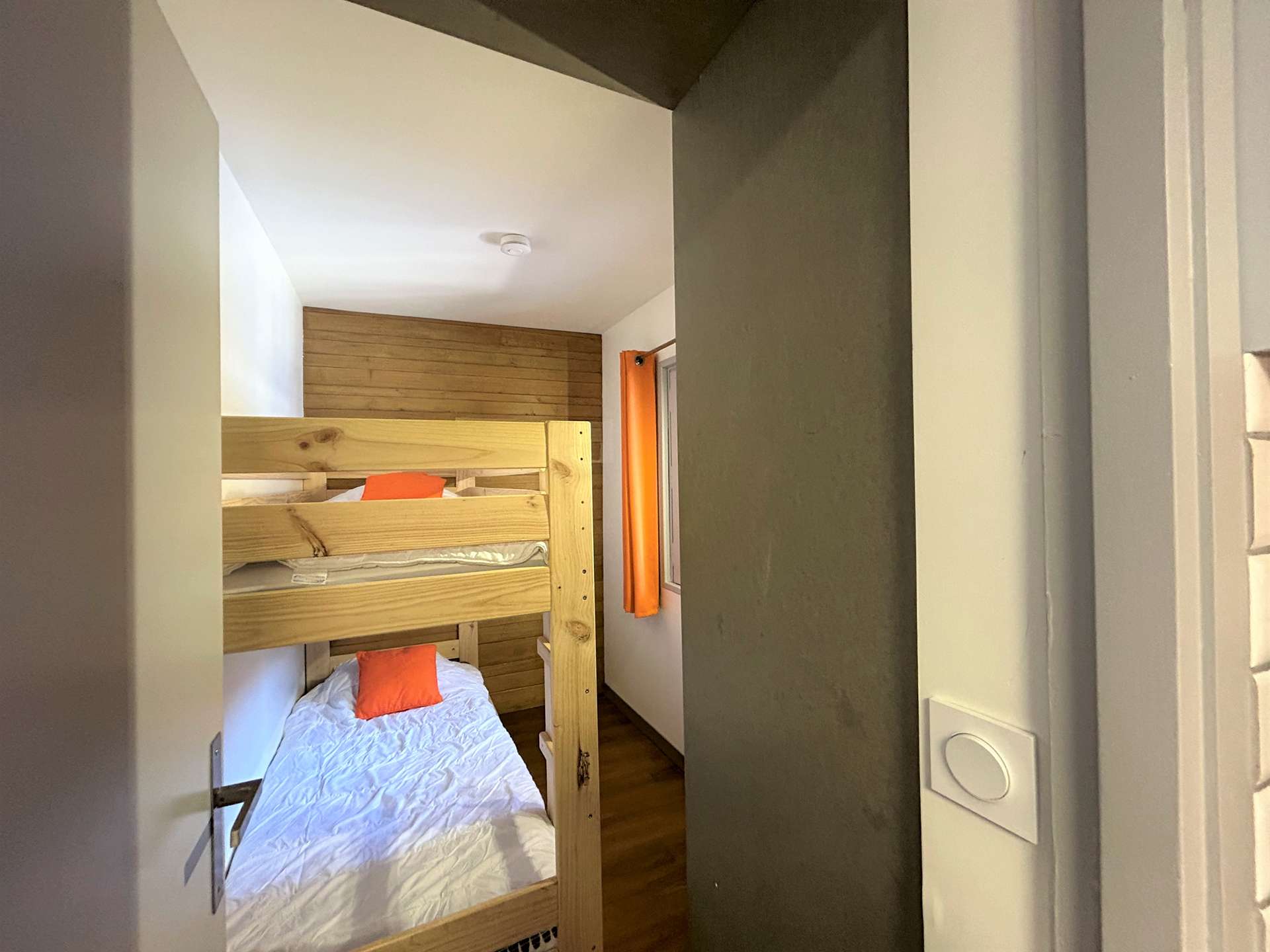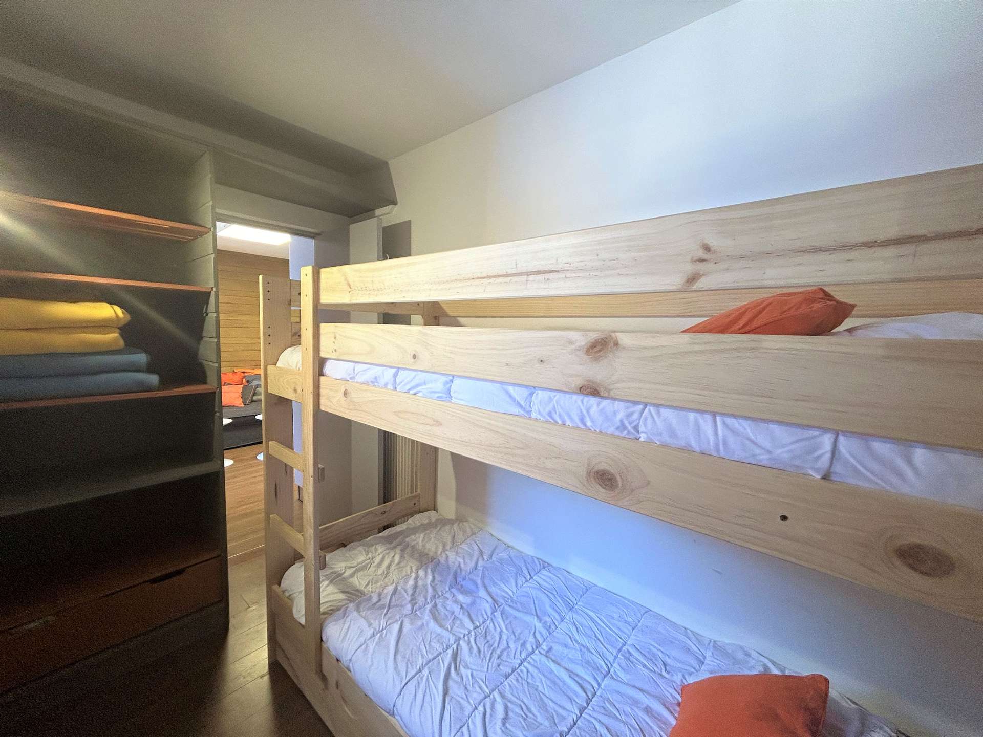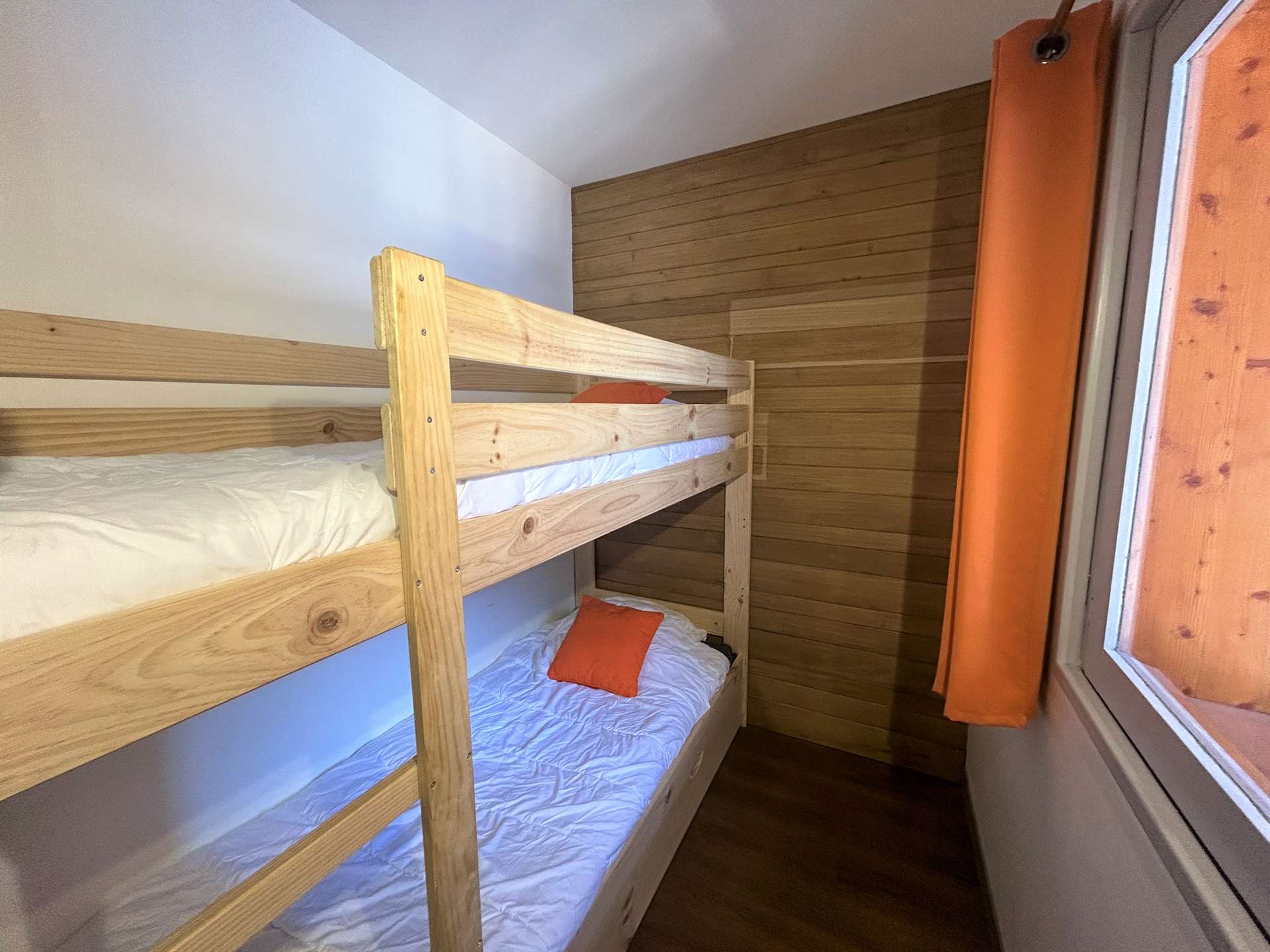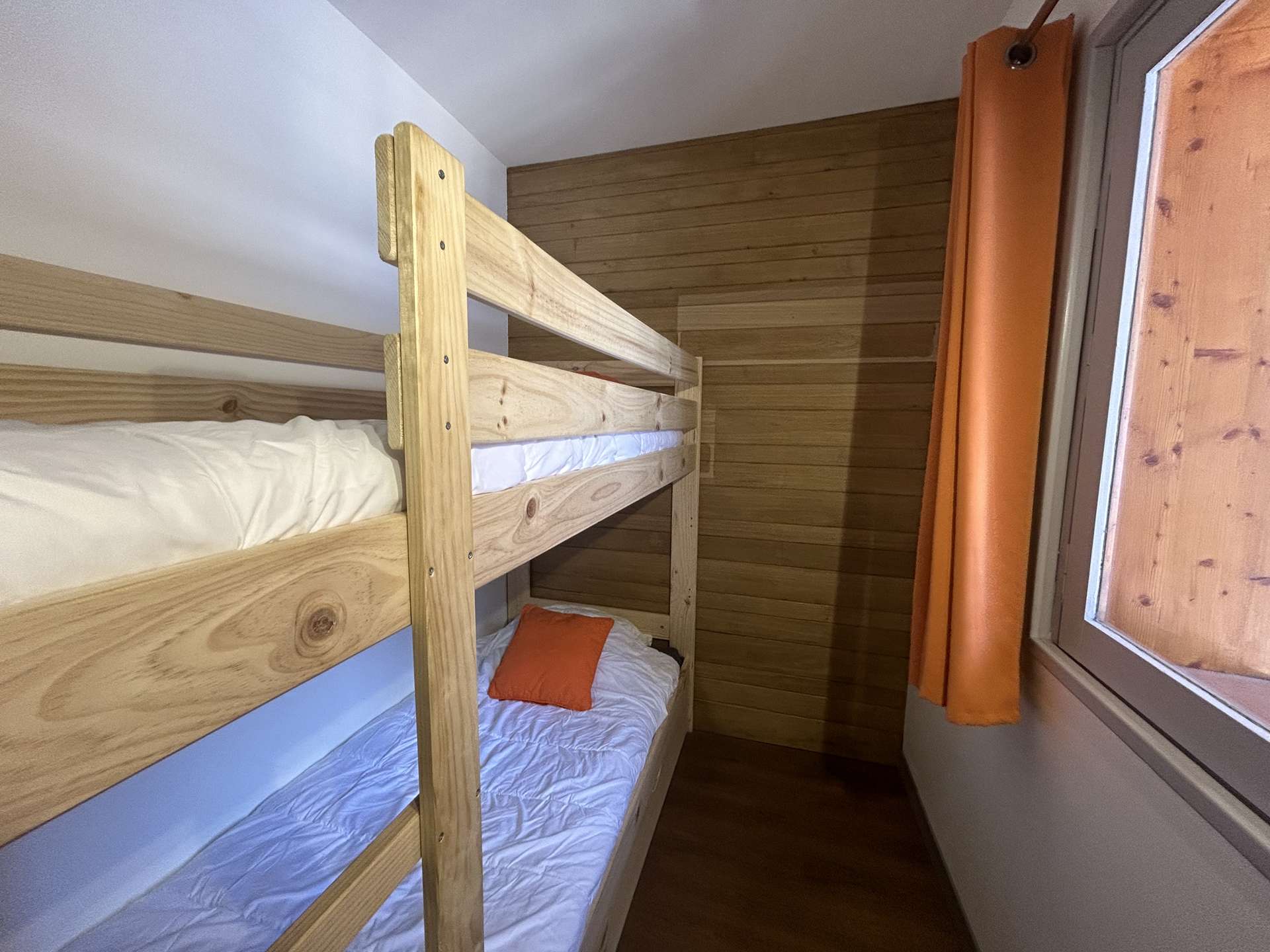 This rental in the mountains, located on the third floor by elevator, includes a living/dining room with a double sofa bed (90x190), a television, an equipped kitchen area, a bedroom with a set of bunk beds (80x190), a bathroom. shower with a toilet.