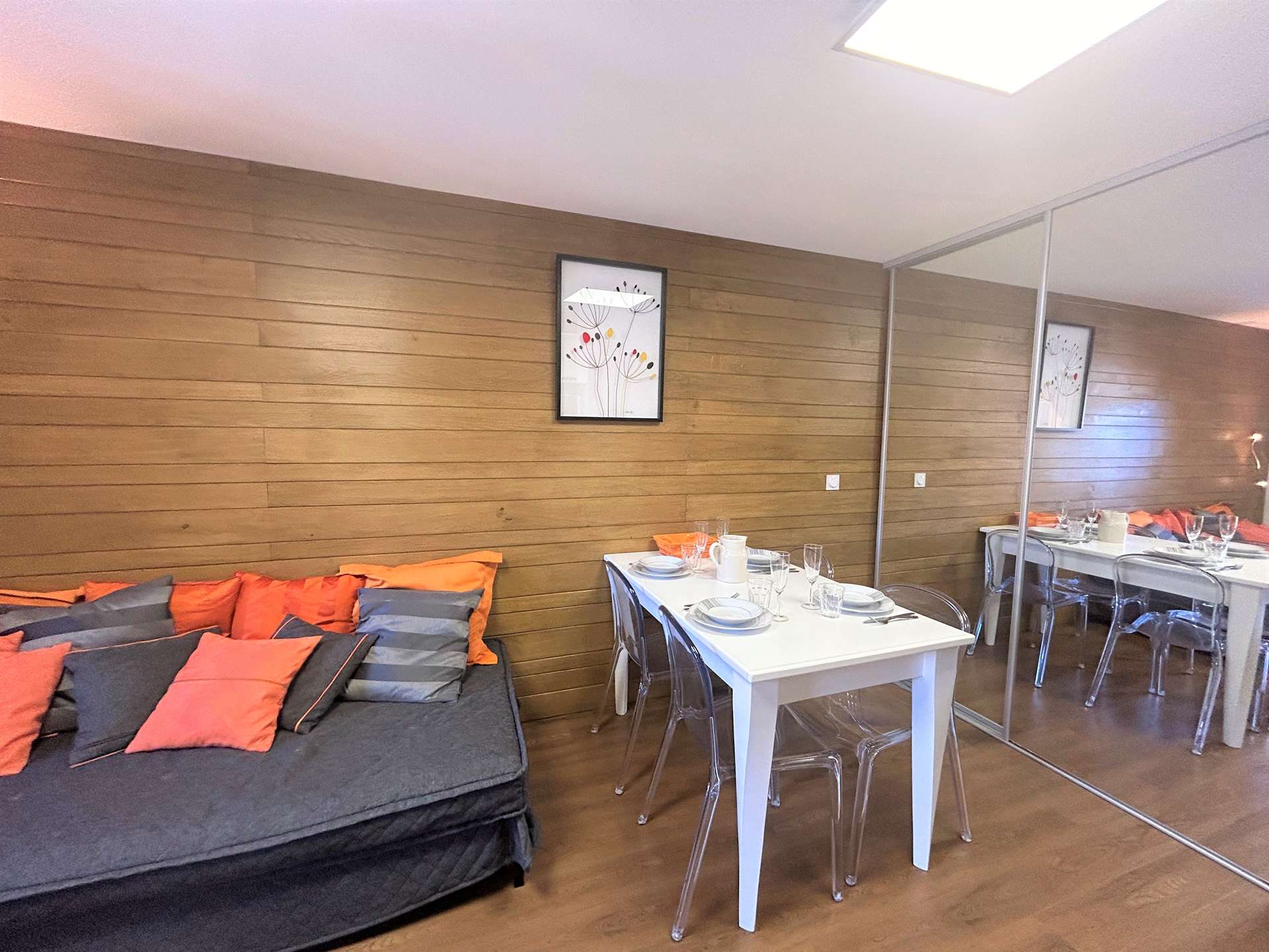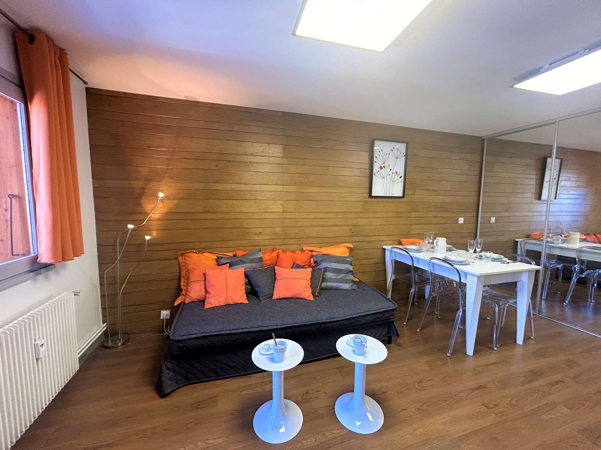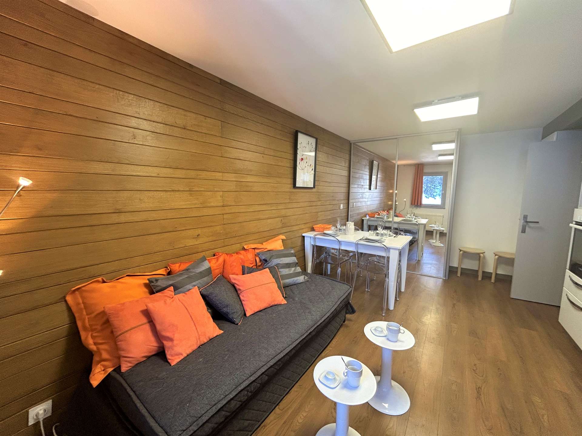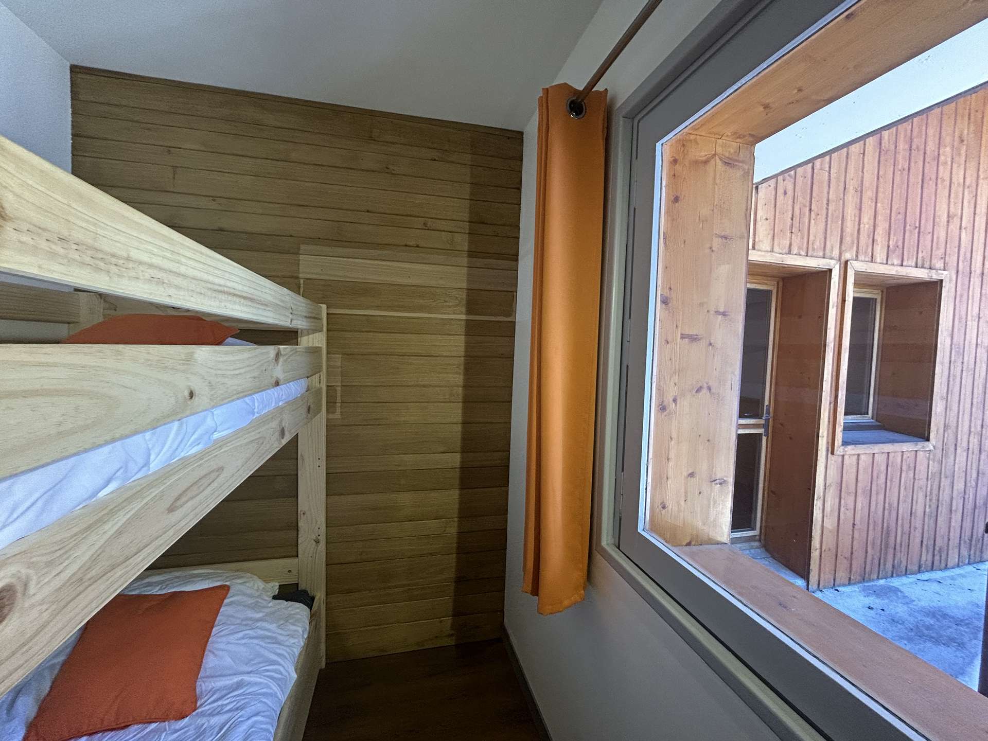 This rental in the mountains, located on the third floor by elevator, includes a living/dining room with a double sofa bed (90x190), a television, an equipped kitchen area, a bedroom with a set of bunk beds (80x190), a bathroom. shower with a toilet.