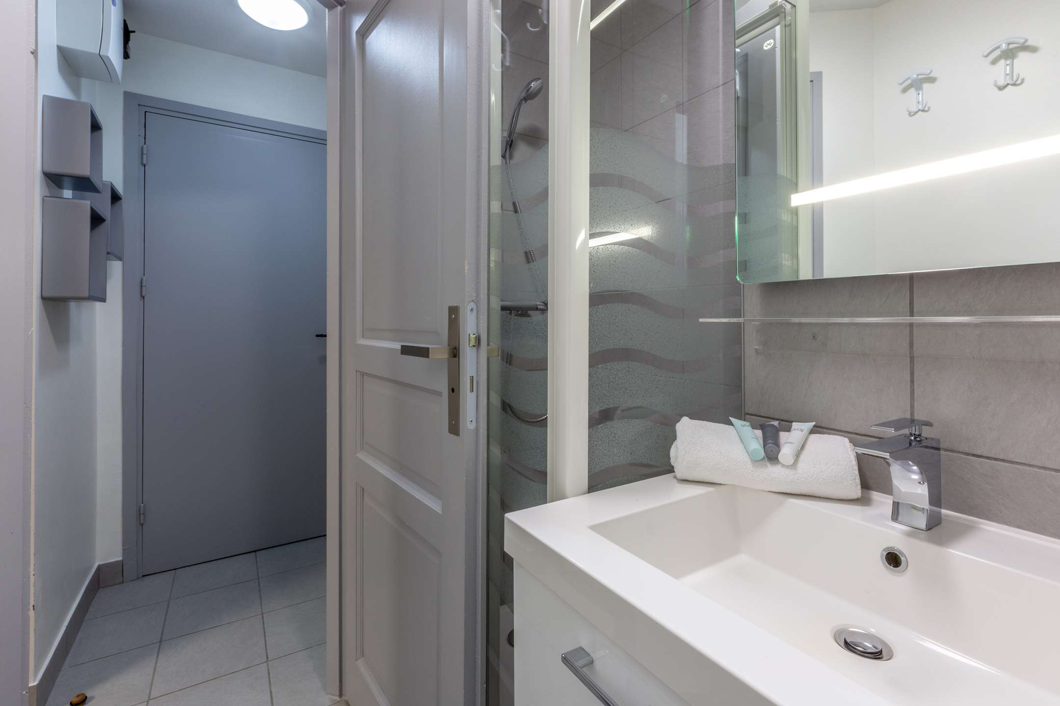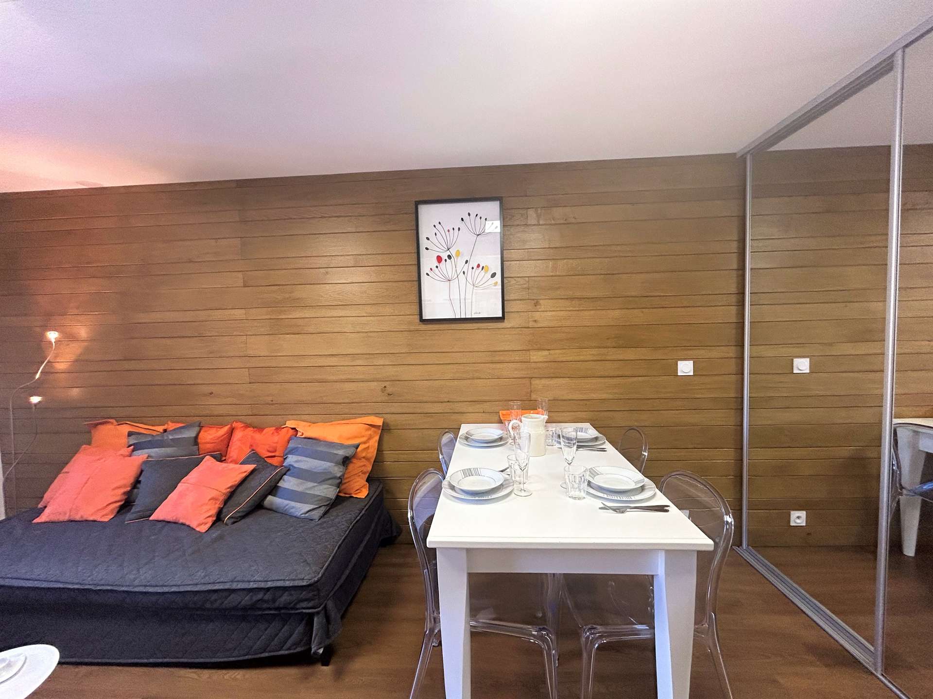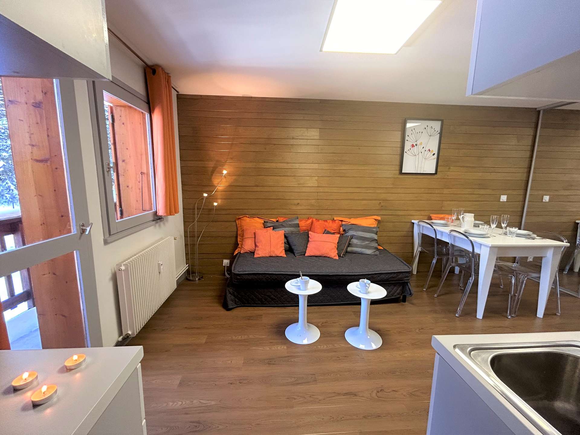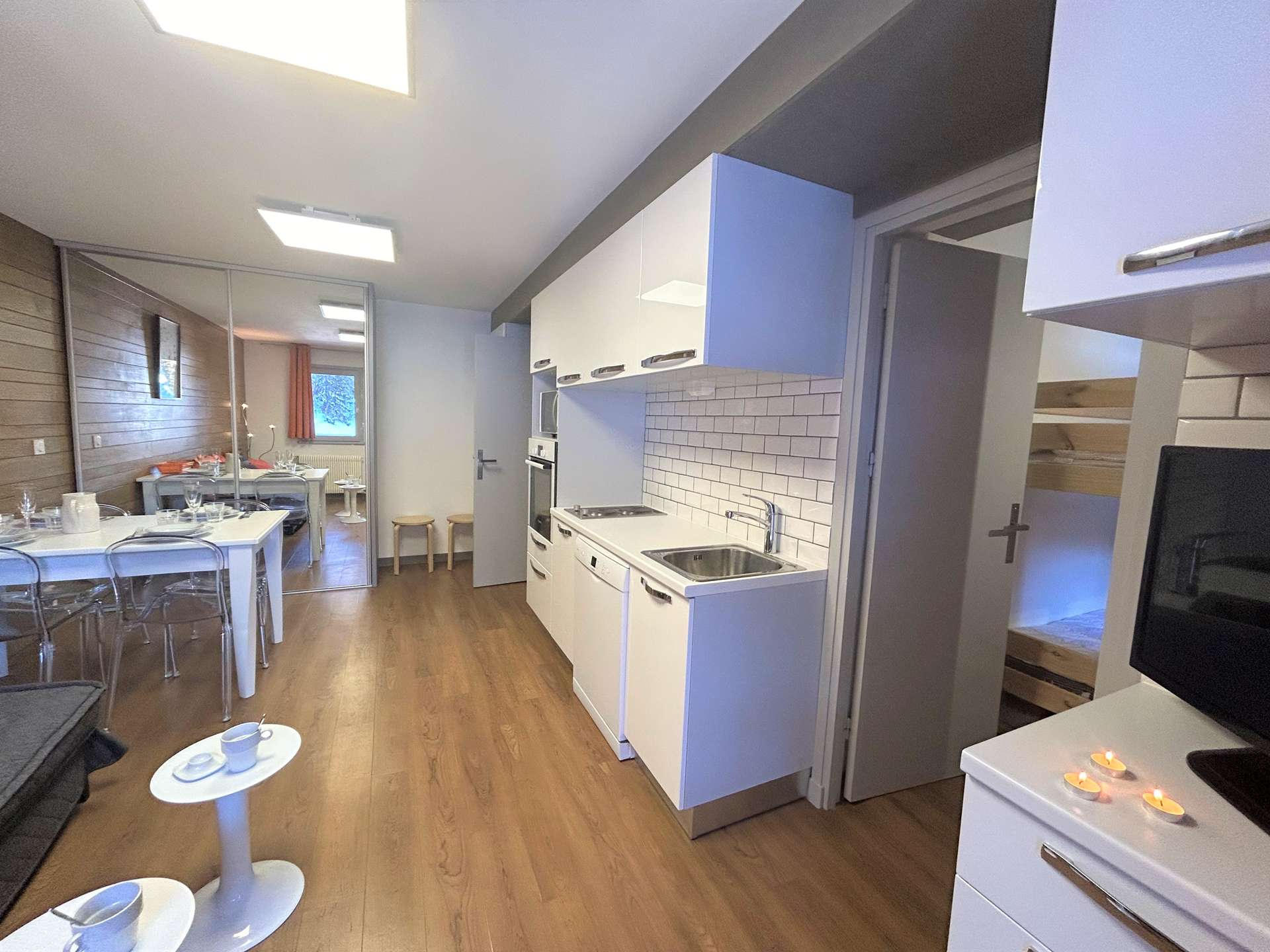 This rental in the mountains, located on the third floor by elevator, includes a living/dining room with a double sofa bed (90x190), a television, an equipped kitchen area, a bedroom with a set of bunk beds (80x190), a bathroom. shower with a toilet.