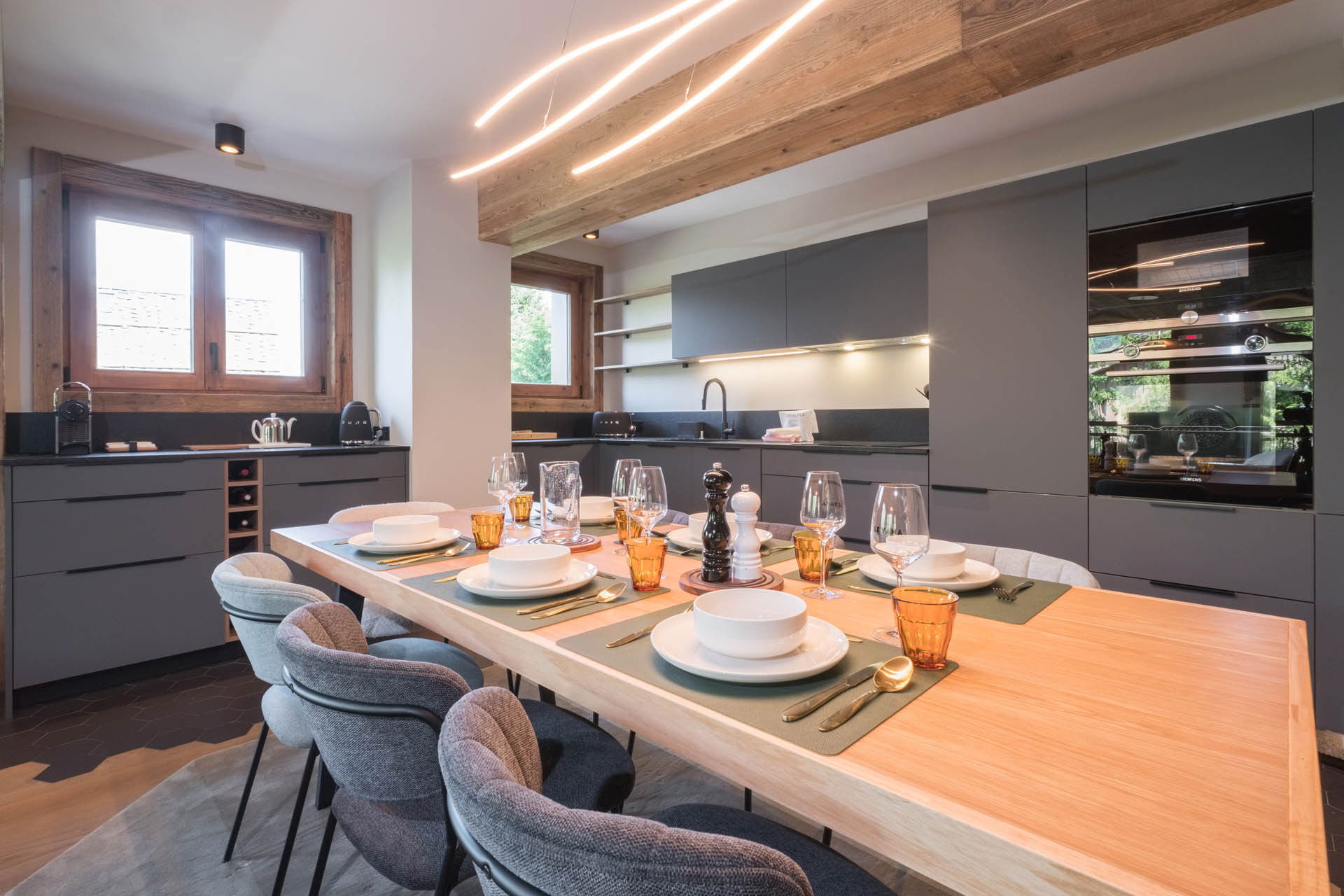 - Fitted open kitchen: fridge/freezer, oven, microwave, dishwasher, induction hob, mixer, kettle, toaster, Nespresso, raclette set, fondue set