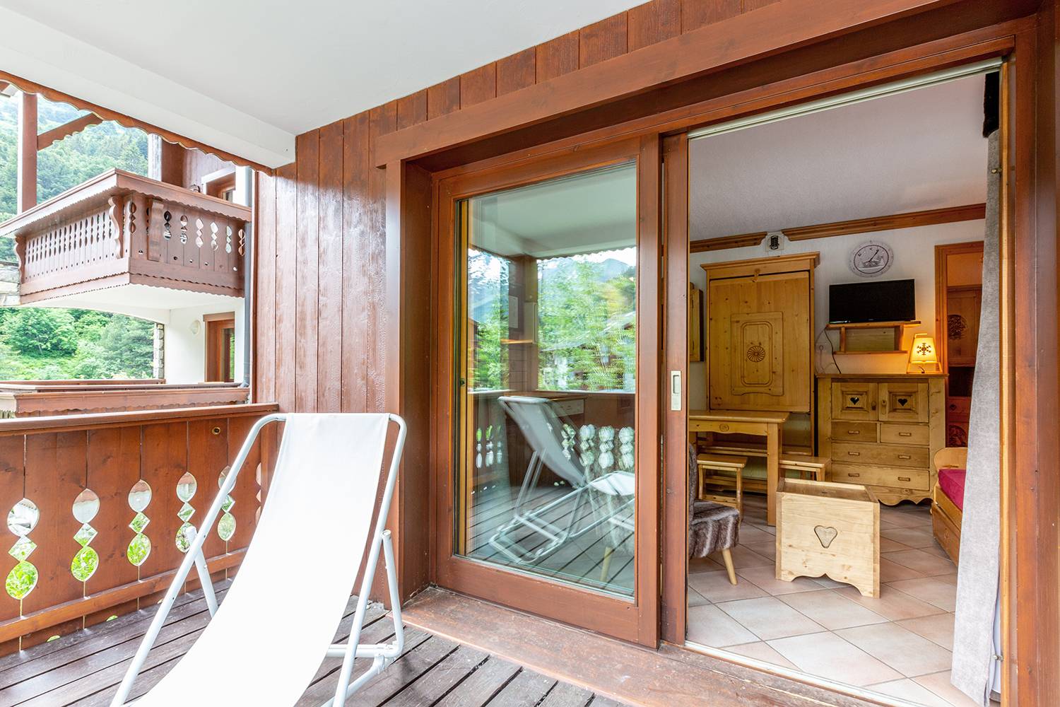 A lounge with a sofa-bed and a pull-out bed (80x190), as well as a TV and a balcony.