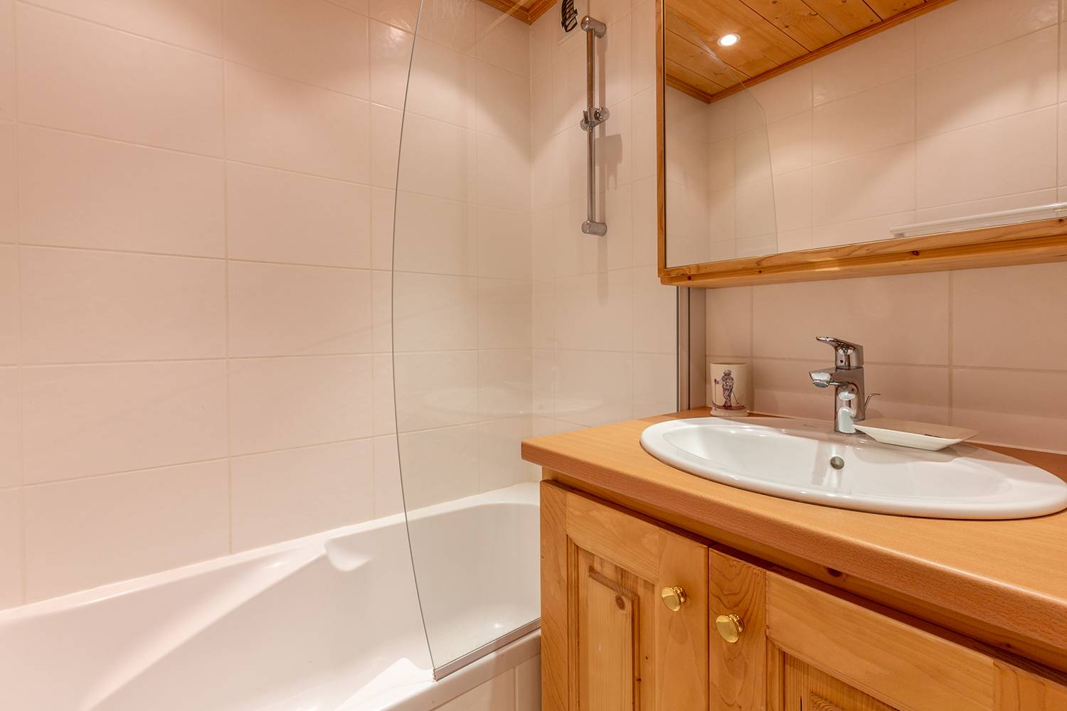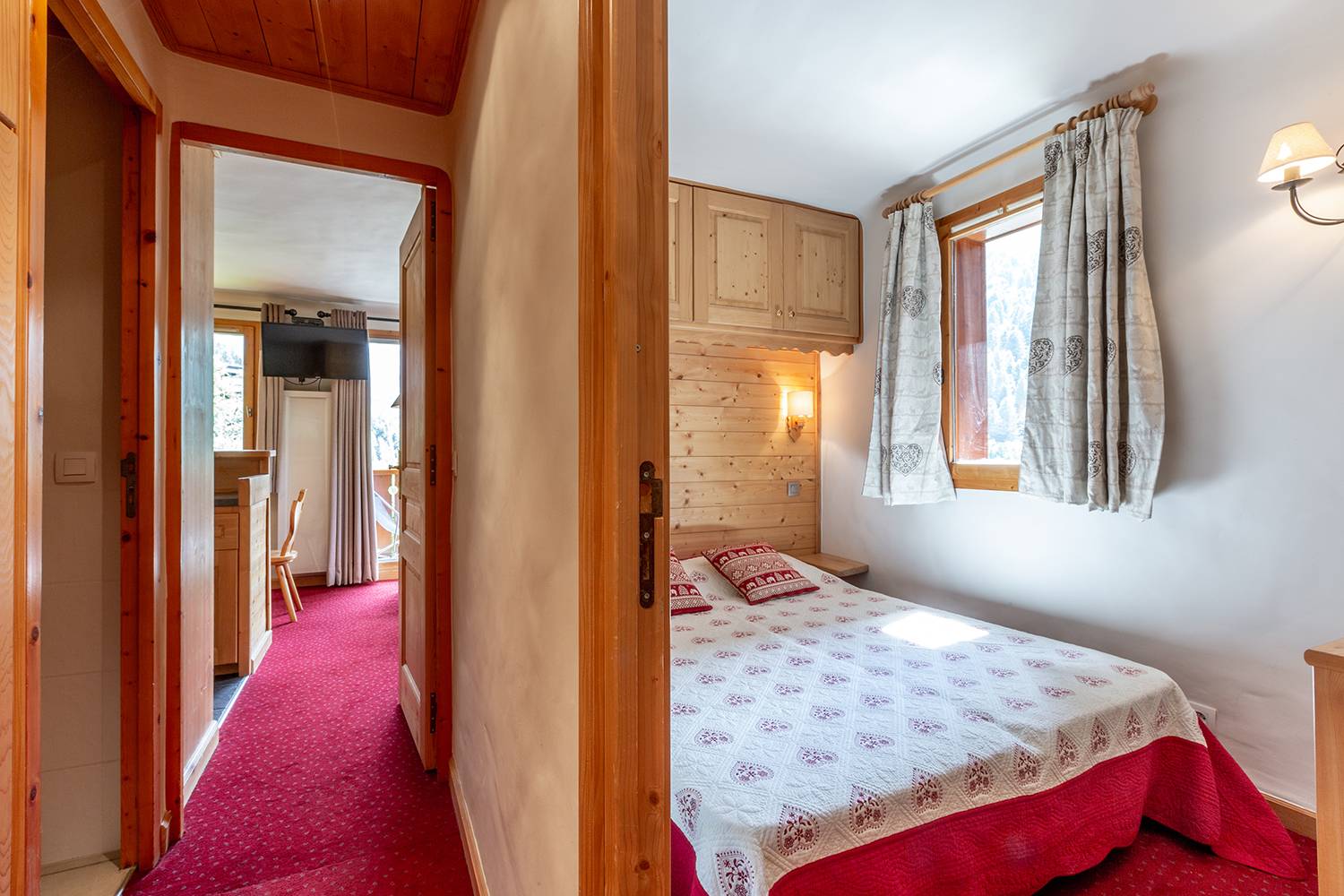 In the lounge you will find 2 single beds (80x190), the TV, and a balcony. One cabin room with a single bed and a mezzanine bed (80x190), one bedroom with 2 single beds pushed together (80x190). The kitchen is equipped with a glass hob, an oven and microwave combo, a dishwasher, a fridge, toaster, kettle, coffee maker and a raclette machine. The bathroom and toilets are separate. 2nd floor, no elevator. Ski lookers in the building. Non-smoking apartment / Pets forbidden.