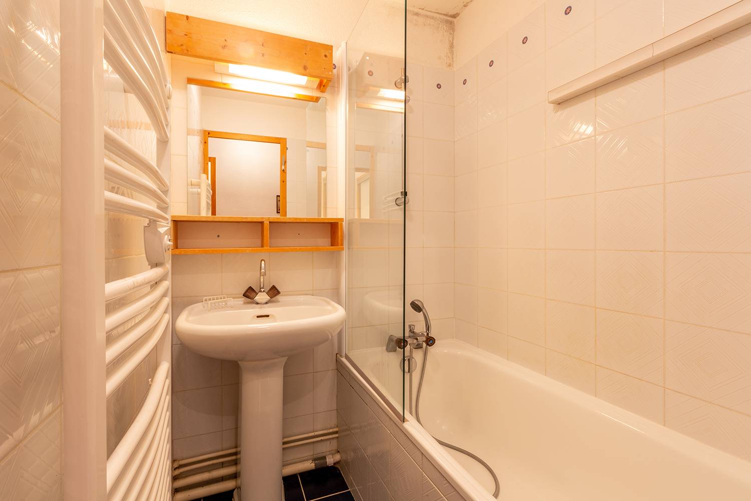 A shower with toilet. Balcony. Ski locker and a lift in the residence.