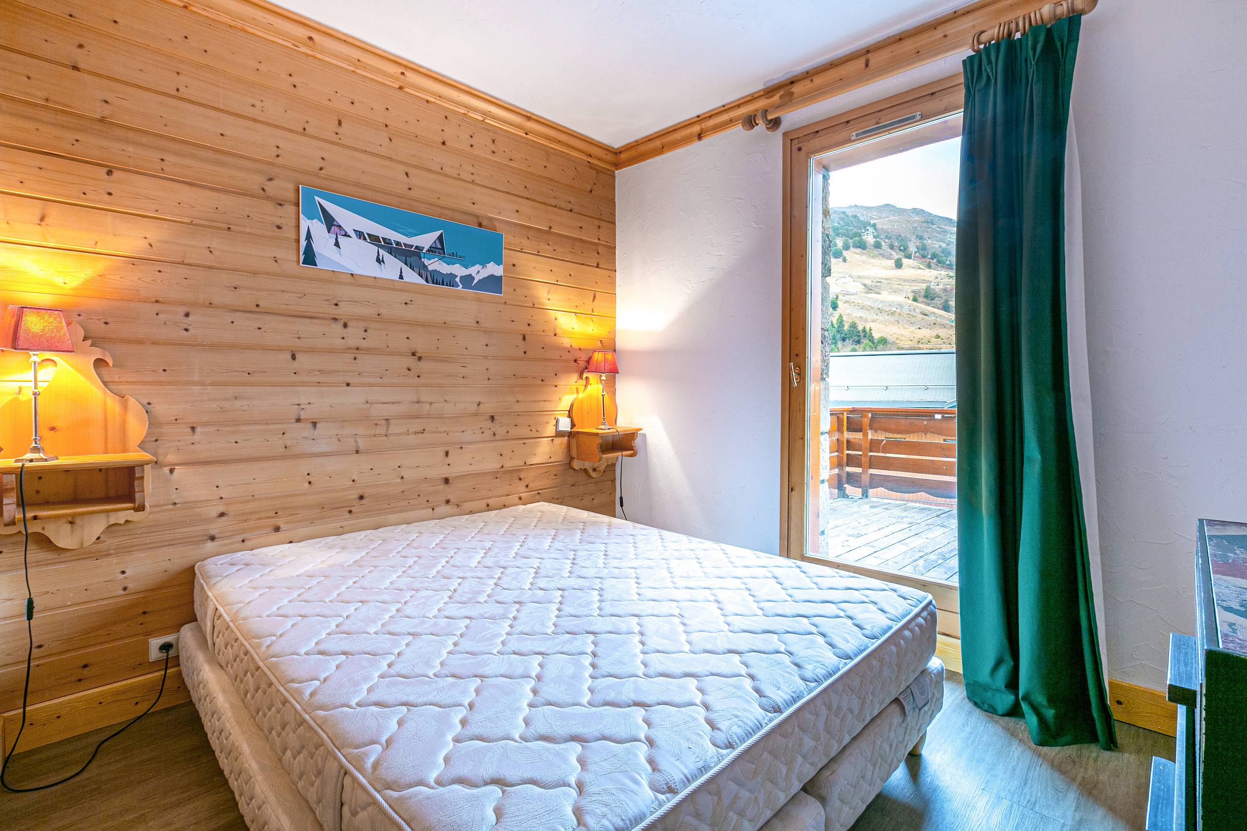 In the living room, which is extended with a balcony, there is a sofa bed and a trundle bed, TV. Bedroom cabin with a set of bunk beds (80x190). Balcony. Bedroom with a double bed (150x190) and TV. Equipped with electric hob, extractor, oven, dishwasher, refrigerator. Bathroom, shower room and separate wc. Ski locker and a lift in the residence. South exposure. Non-smoking apartment. Ground floor.