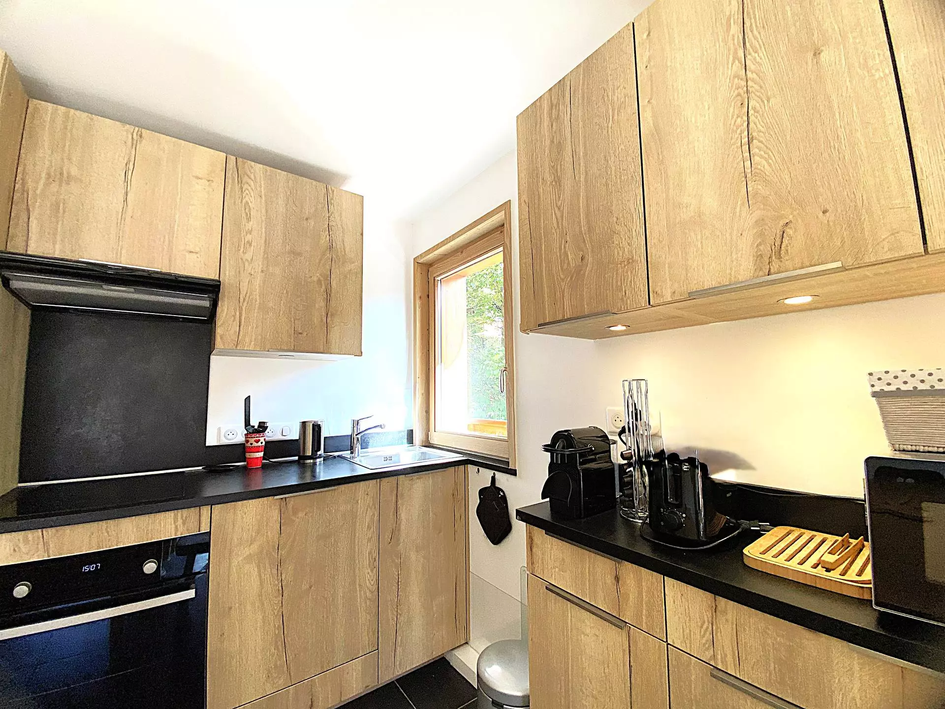 It is fully equipped with ceramic hobs, an oven, a microwave, a dishwasher and a refrigerator with freezer.