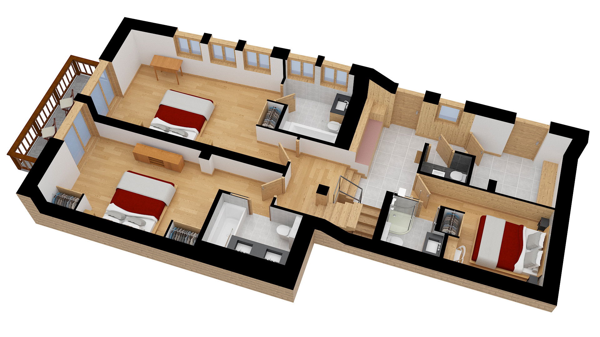 Chalet les Voûtes of about 340m², with 5 bedrooms for 10 adults. It is located in the hamlet of Raffort, 215 meters from the free bus stop that leads to Meribel center. There is also the Olympe gondola nearby which leads directly to the snow front of Méribel.