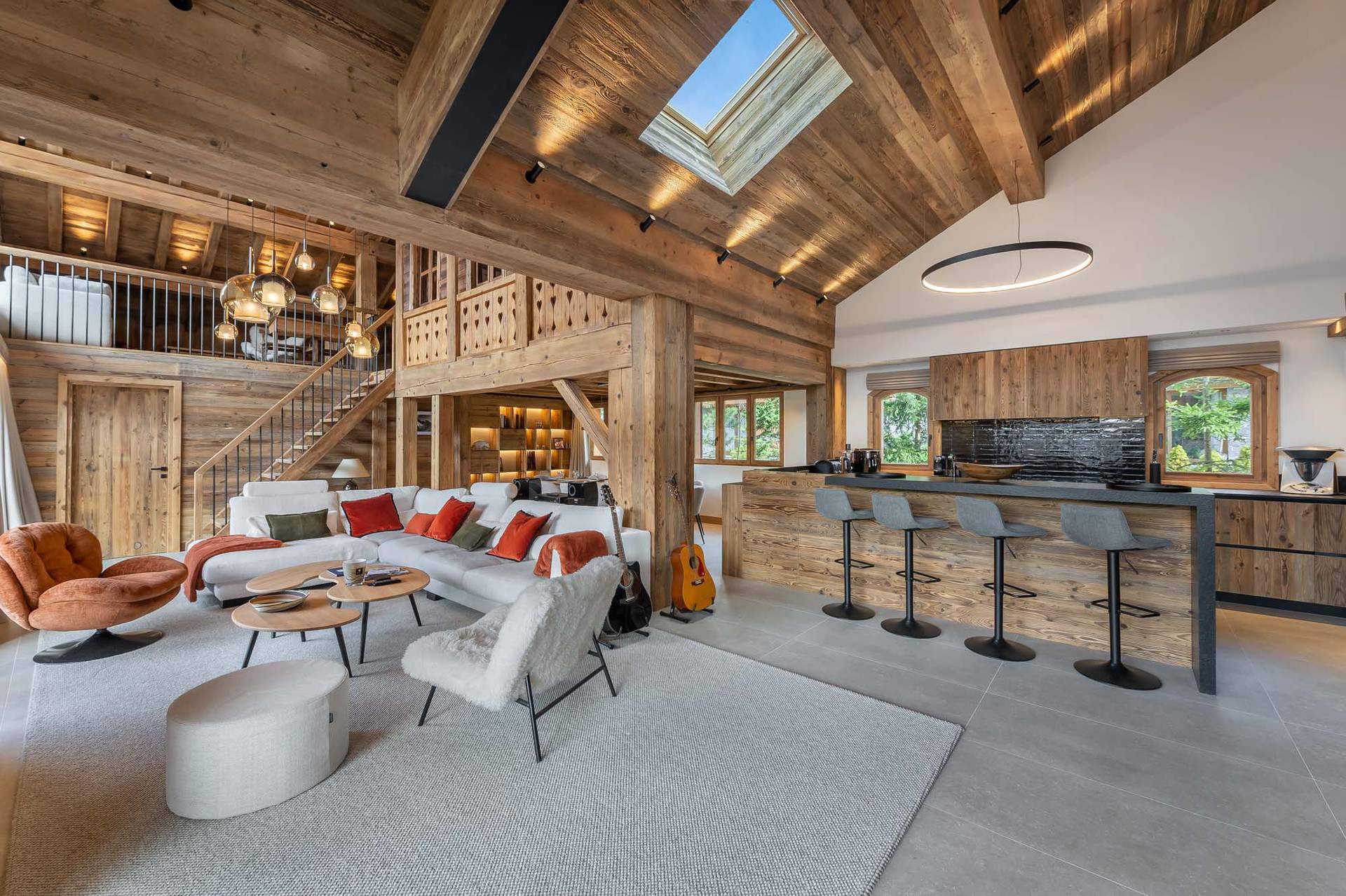 - Bedroom 2: en suite double (160x200), with shower room and toilet. Mezzanine with lounge